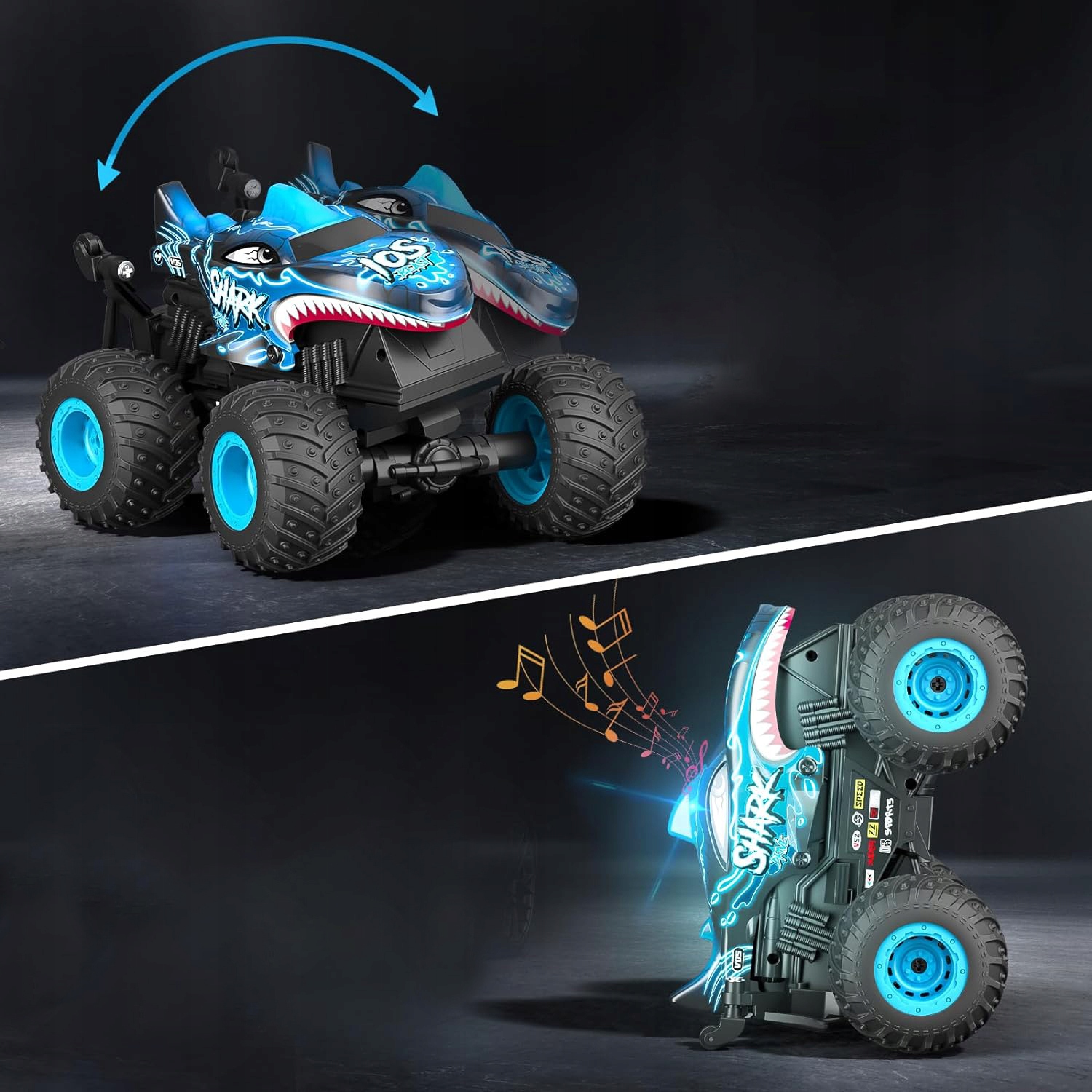 🎁Ця машина-монстр-акула з дистанційним керуванням може обертатися ліворуч і праворуч, їздити вертикально та обертатися на 360° вертикально. Ці цікаві функції подарують дітям радість дитинства в будь-який час. Автомобіль на дистанційному керуванні має три режими освітлення та динамічну музику, яка стає більш привабливою вночі.