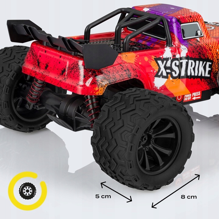 Автомобіль має повний привід і великі позашляхові колеса висотою 8 сантиметрів і шириною 5 сантиметрів, що робить його чудовим для ігор на вулиці.