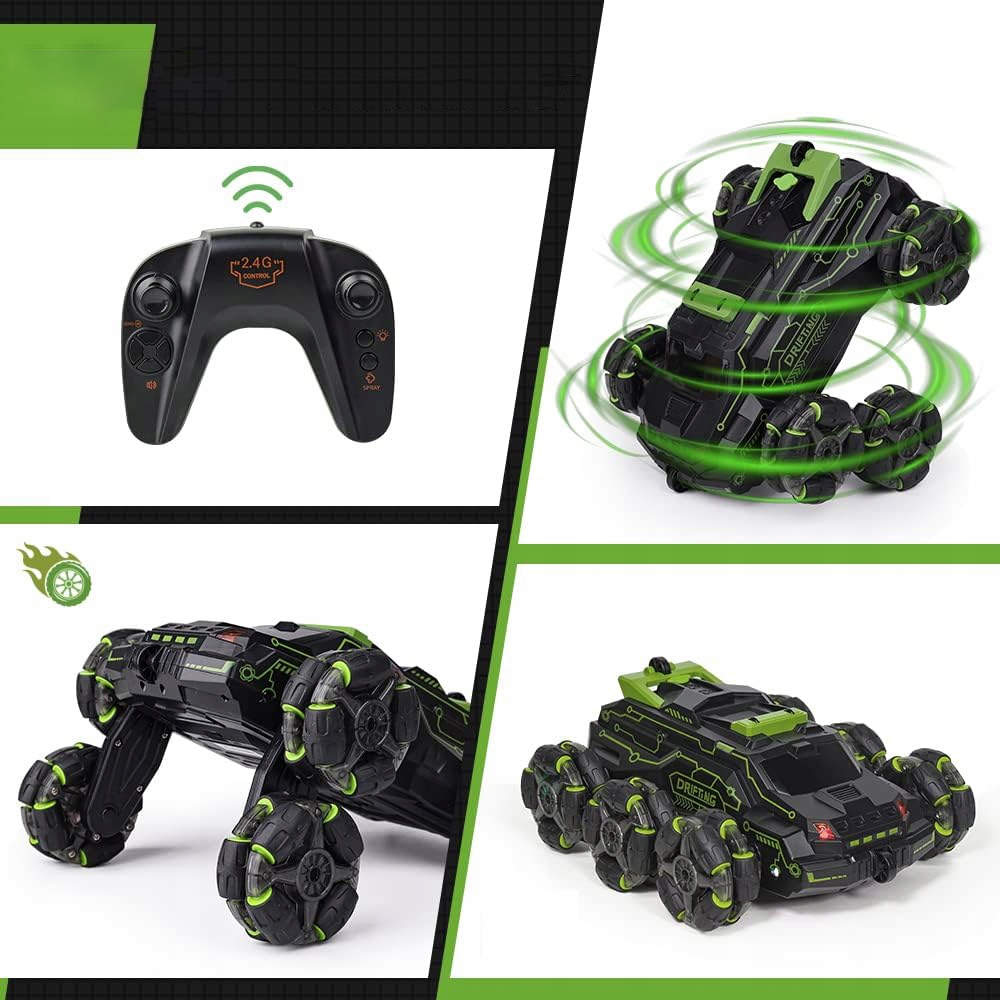 - Характеристики продукту: вперед, вперед назад, поворот ліворуч , обертання праворуч, переміщення ліворуч, перемикання праворуч, автоматична демонстрація однією клавішею, спрей однією клавішею, гойдалка однією клавішею, кольорові вогні на колесах