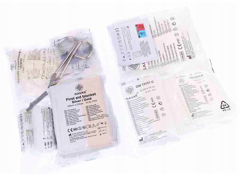 Автомобільні аптечкимістять водонепроникну тканинну упаковку. Завдяки цьому ви можете використовувати його будь-де в різних умовах. Він містить найнеобхідніші перев’язувальні матеріали, необхідні для подорожі.