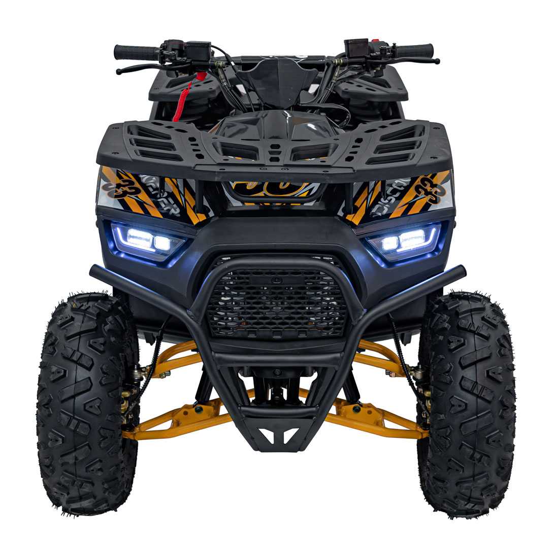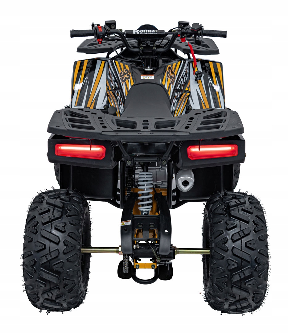 Бензиновий квадроцикл 120CC DISCOVERER оранжевого кольору — ідеальний вибір для молодих любителів пригод. Завдяки міцній міцній рамі з порошковим покриттям і посиленому задньому поворотному важелю цей квадроцикл забезпечує не тільки безпеку, але й довговічність. Оснащений одноциліндровим тритактним двигуном з повітряним охолодженням об’ємом 125 см³, він гарантує чудову продуктивність і надійність за будь-яких умов.