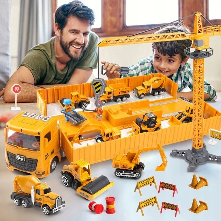 - ✅ Реалістичний будівельний майданчик – діти можуть виступати в ролі кранівників, водіїв вантажівок або будівельників.