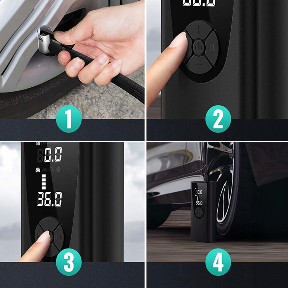 - Пропонує 4 інтелектуальні режими накачування (автомобіль, мотоцикл, велосипед, м’яч) і спеціальний режим, а також 4 одиниці накачування (psi, бар, кПа, кг/см²) на вибір. Вбудоване світлодіодне підсвічування дозволяє легко використовувати пристрій у темряві. Вбудований зарядний порт USB A забезпечує аварійне живлення для вашого телефону чи інших мобільних пристроїв.