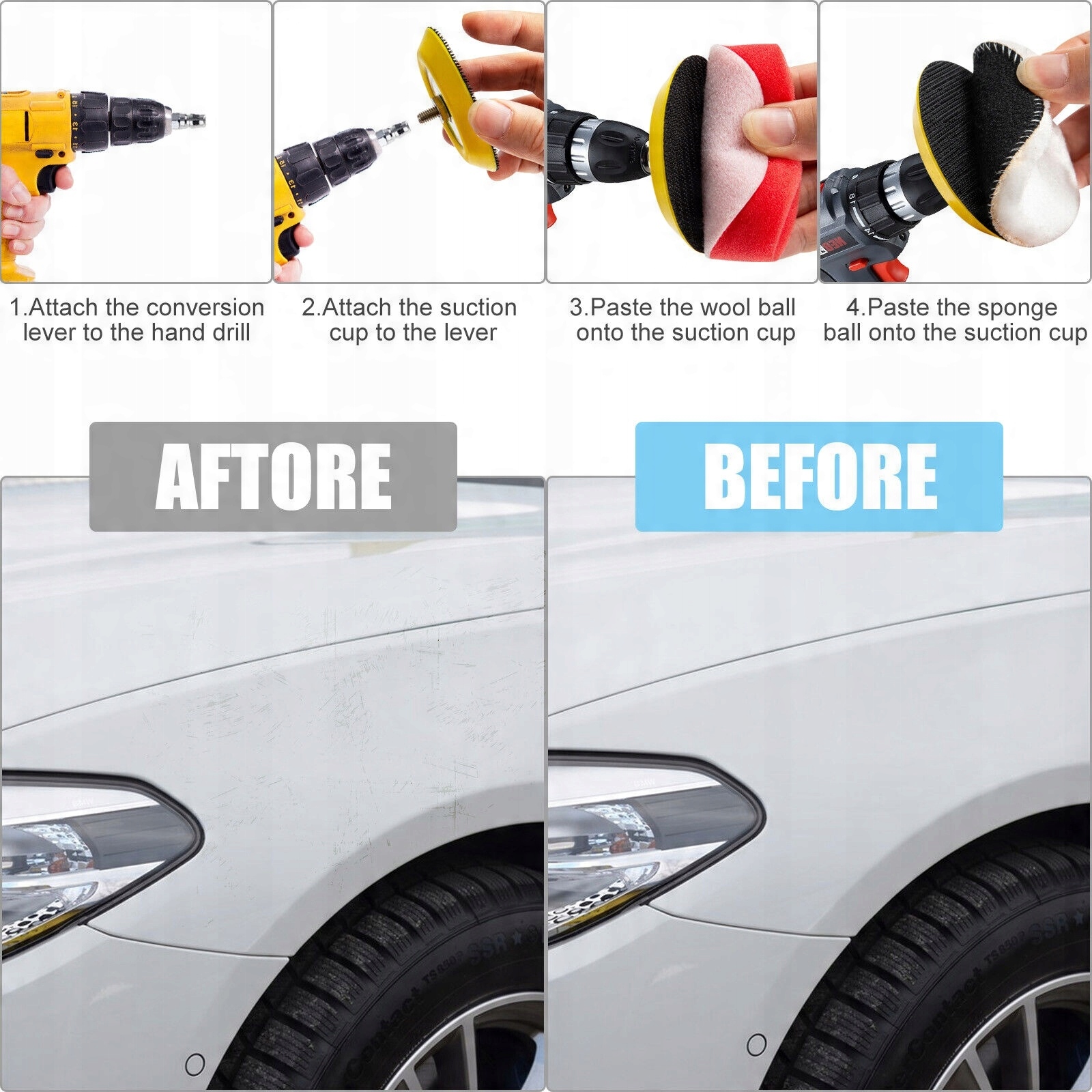 Матеріал - виготовлений з високоякісної губки, всі губкові прокладки можна очистити для повторного використання. Ефективне видалення та полірування найскладніших для видалення окислювальних покриттів та подряпин з автомобіля. Може використовуватися в пневматичному або електричному лаках автомобіля.