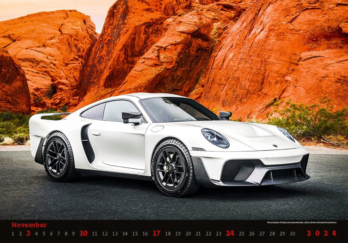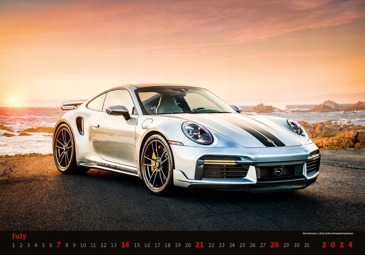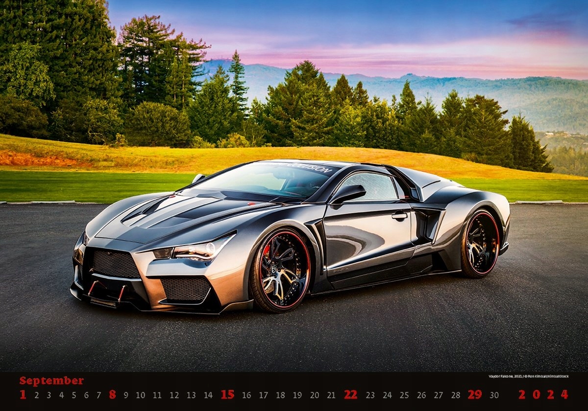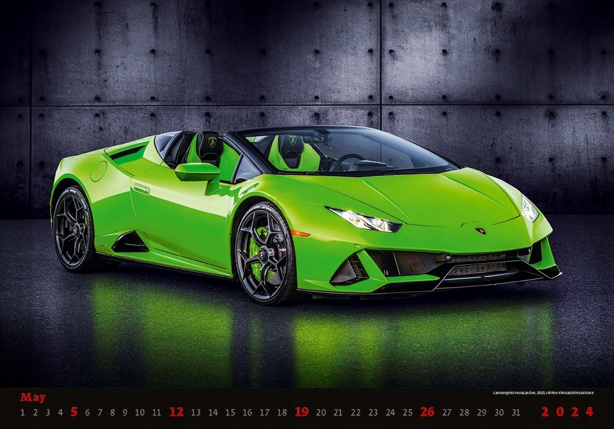 Великий формат фотографій і горизонтальний макет календаря дозволяють підкреслити стрункі силуети спортивних автомобілів. .