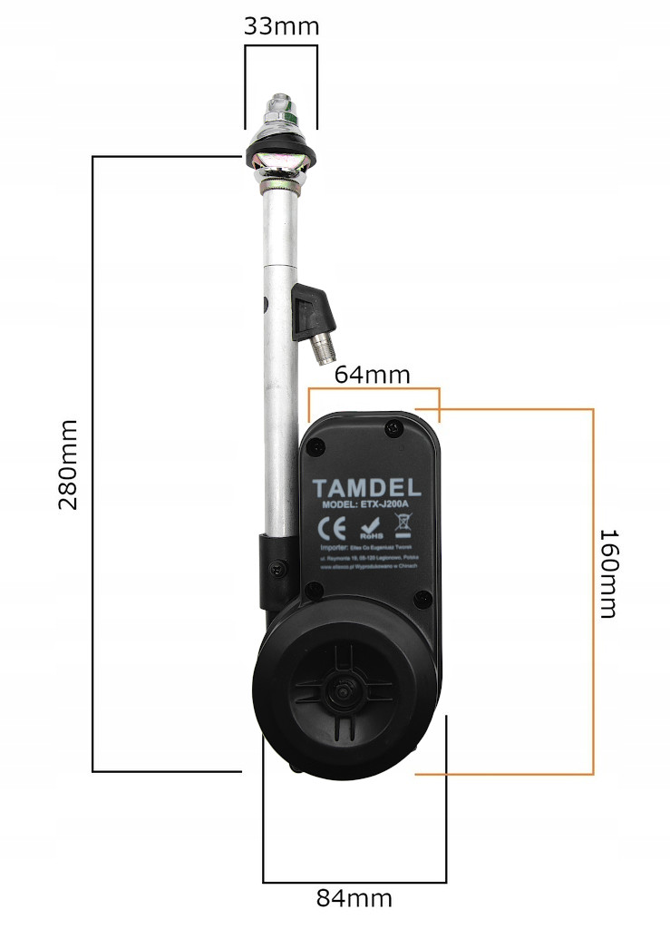UNIWERSALNA AUTOMATYCZNA ANTENA SAMOCHODOWA WYSUWANA TAMDEL ETX-J200A