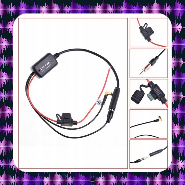 ✅ Підсилювач підключається до автомобільної установки 12В. На кабелі є запобіжник, який захищає радіо від стрибків напруги.