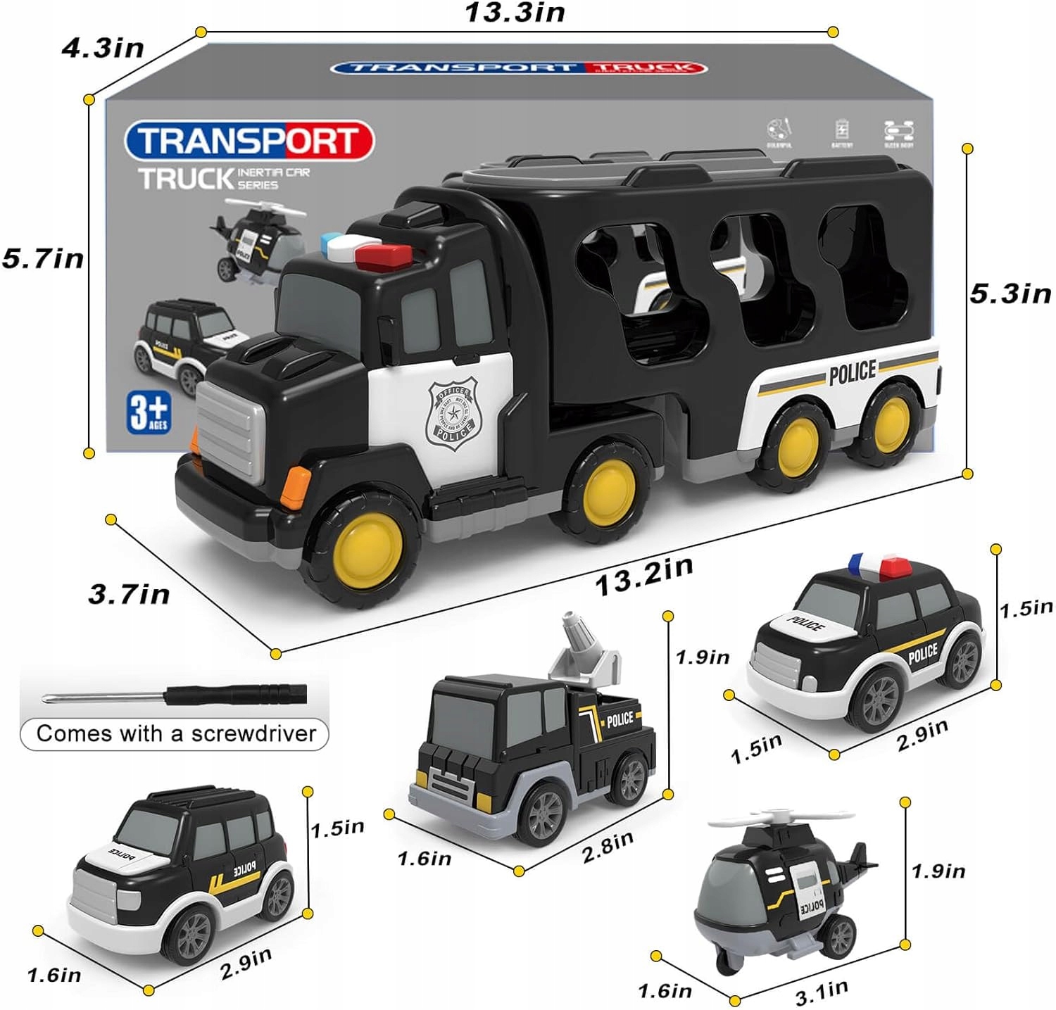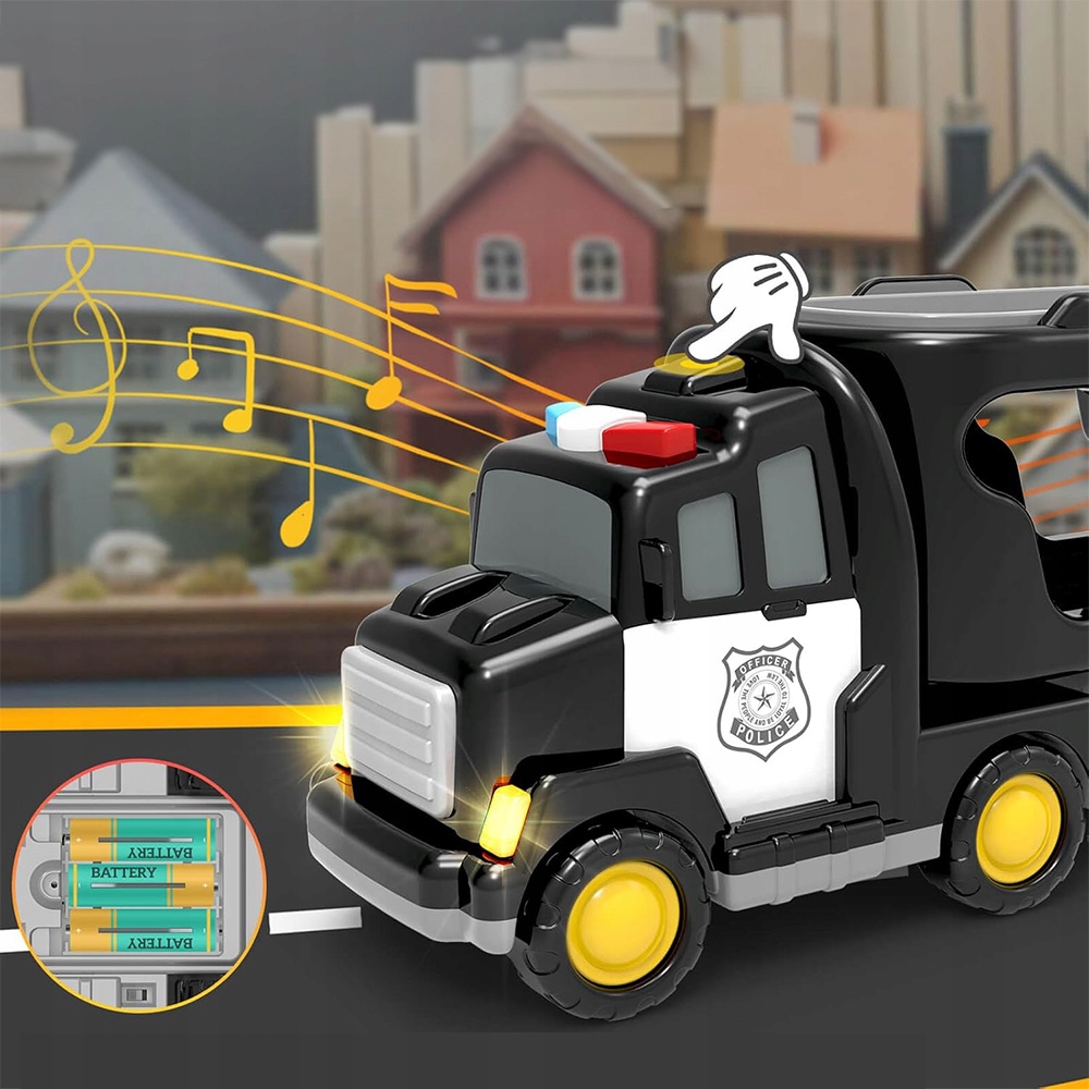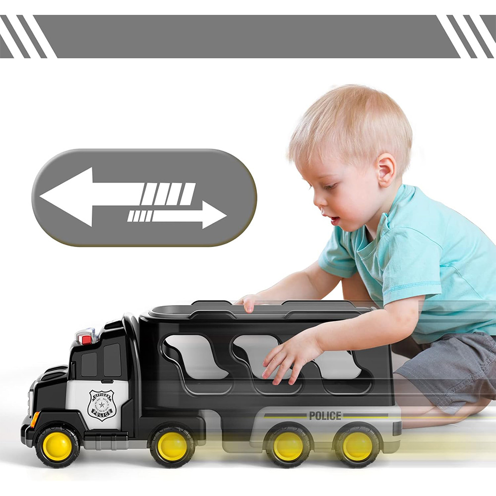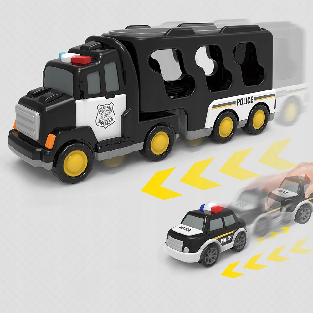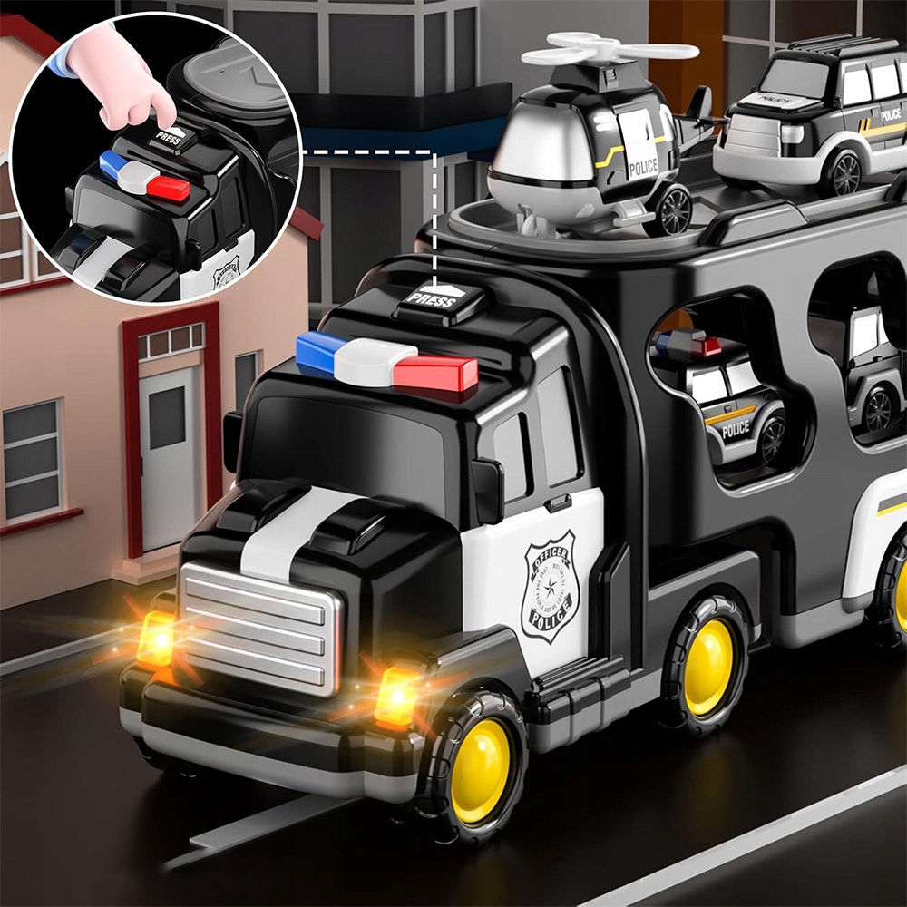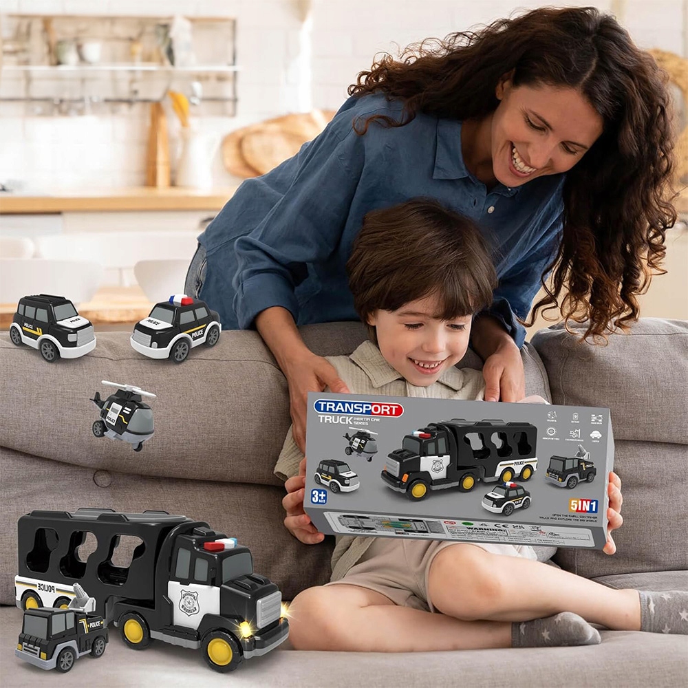 Цей 5 -1 -1 поліцейський автомобіль містить три невеликі машини для іграшок поліції та невеликий поліцейський іграшковий літак та вантажівка поліції. Унікальний стиль гри залучає вашу дитину. У грі діти можуть створити власну поліцейську рятувальну базу, імітувати роботу поліцейського відділення, відчувати велику професійну забаву!