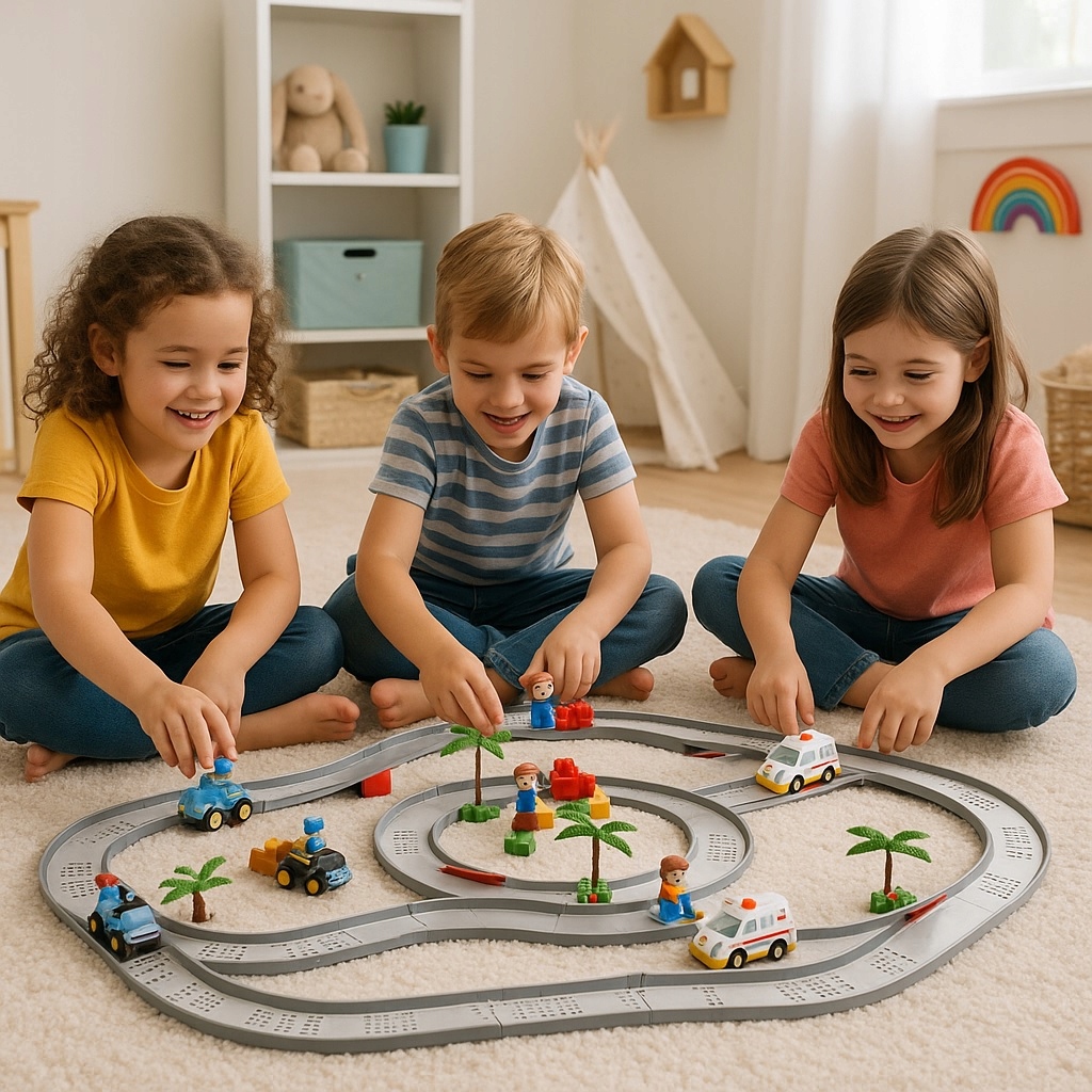 ⭐ Набір доріжок з батарейними автомобілями до 85 наклейок El +
