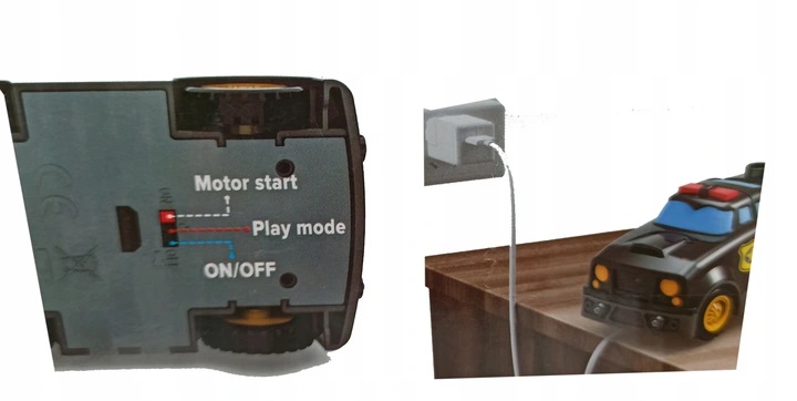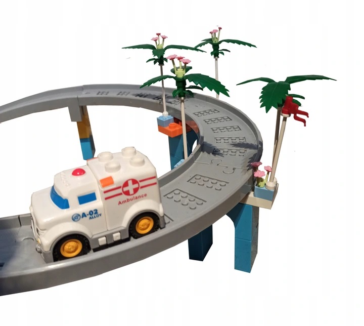 Набір включає поліцейську машину, пожежну машину та швидку допомогу для встановлення на спеціальній платформі, оснащеній акумулятором.