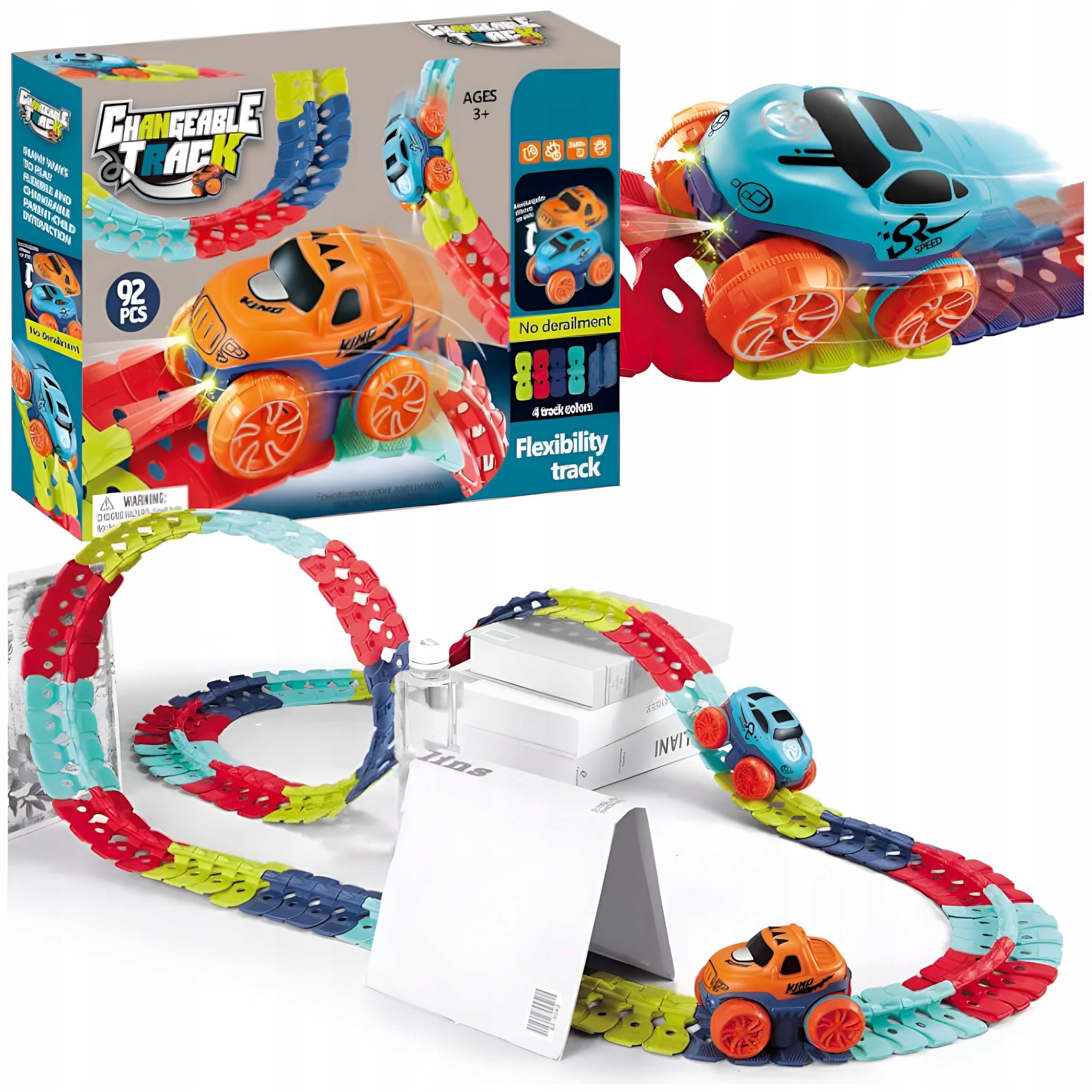 Завдяки використанню інноваційного з’єднувача доріжку можна згинати та скручувати в різних напрямках, що дозволяє створювати динамічні та складні конструкції🏎️