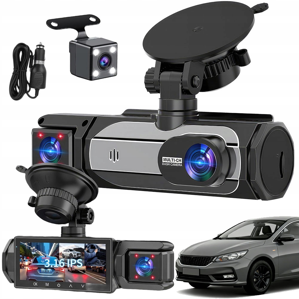 Захистіть свій автомобіль за будь-яких умов! Цей автомобільний реєстратор із 3 лінзами одночасно записує зображення з передньої, внутрішньої та задньої частини автомобіля, усуваючи сліпі зони. Завдяки таким функціям, як режим паркування та інфрачервоний порт для нічного запису, він забезпечує комплексний захист 24 години на добу.
