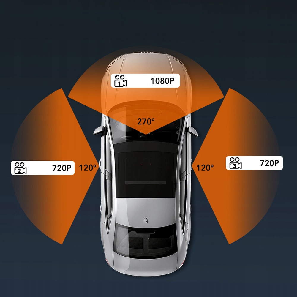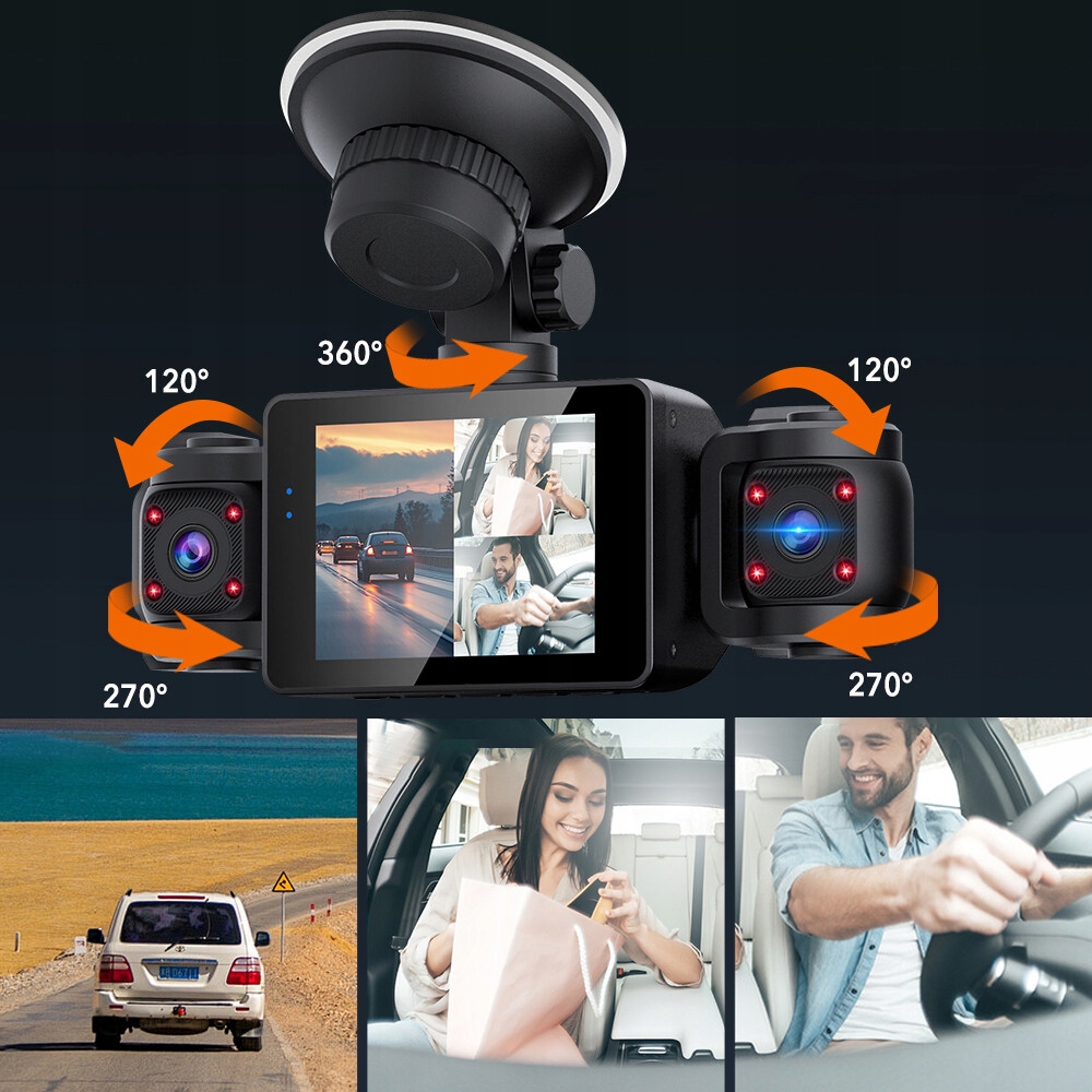 📹 Оснащений трьома лінзами (передньою, лівою та правою), кожна з них може одночасно записувати відео у форматі Full HD 1080P, а кут запису можна регулювати, щоб захопити більше деталей відповідно до ваших потреб.