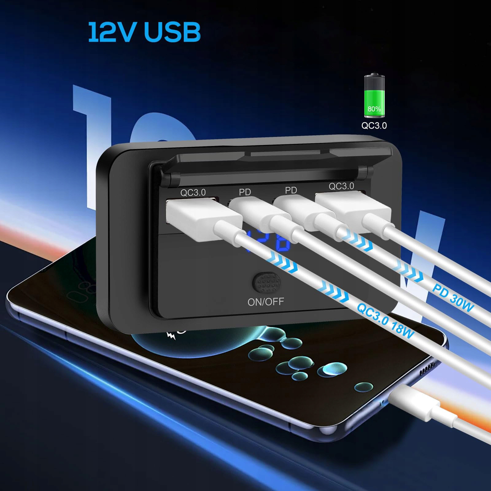 Автомобільна розетка 12 В 24 В 4 USB PD QC 3.0 УВІМК. ВИМК. Клапан 96 Вт