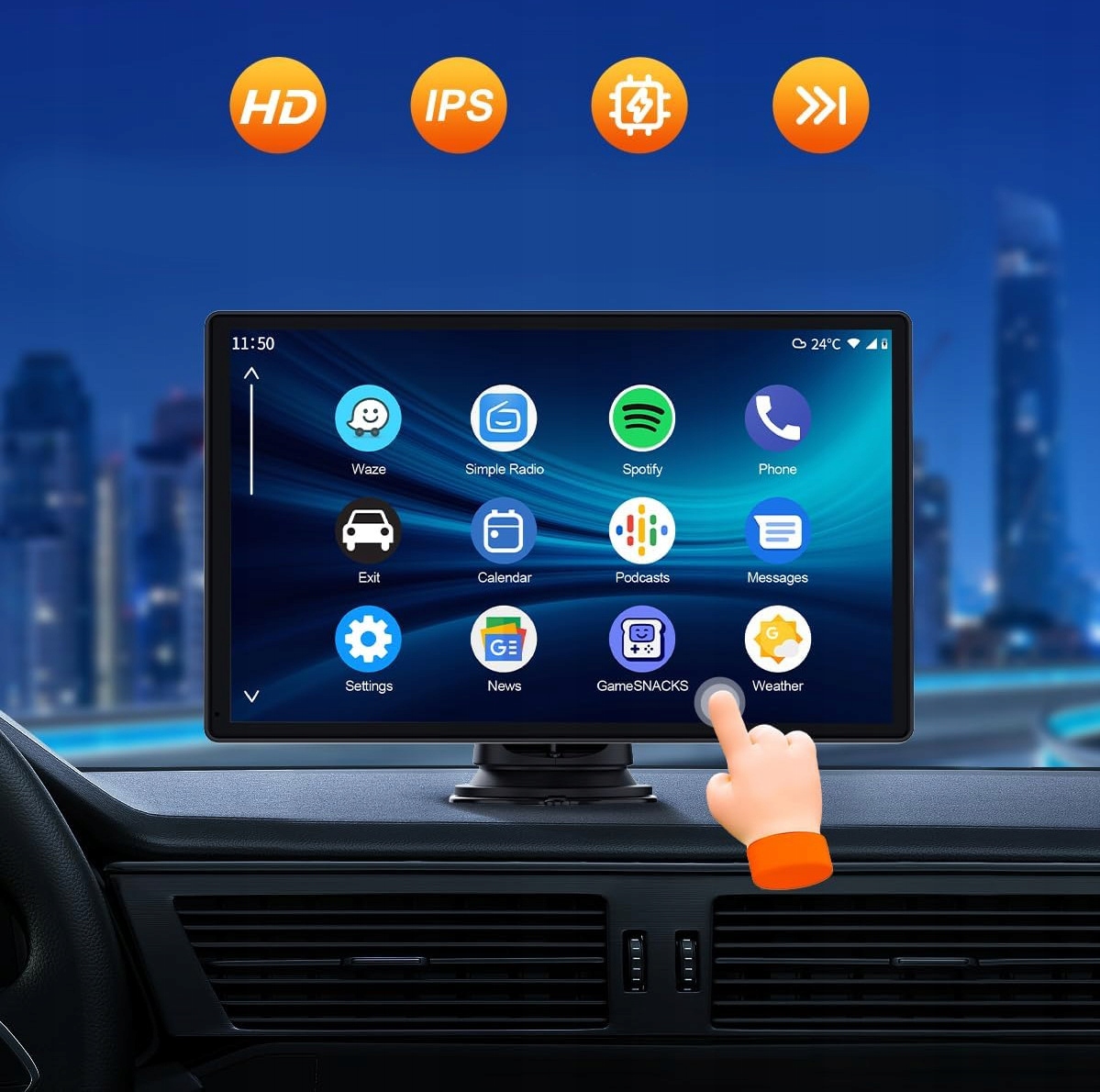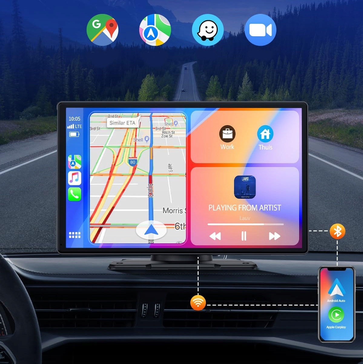 Завдяки бездротовим Apple Carplay і Android Auto ви можете безперешкодно підключати свій телефон і передавати функції та програми на 9-дюймовий портативний автомобільний сенсорний екран.