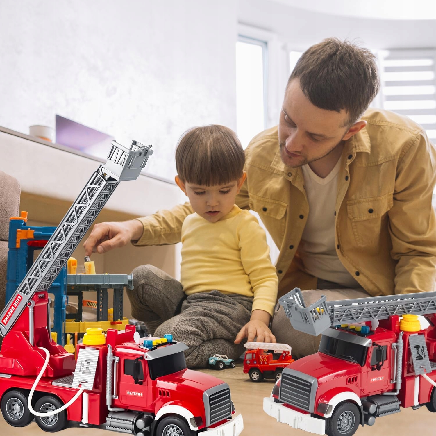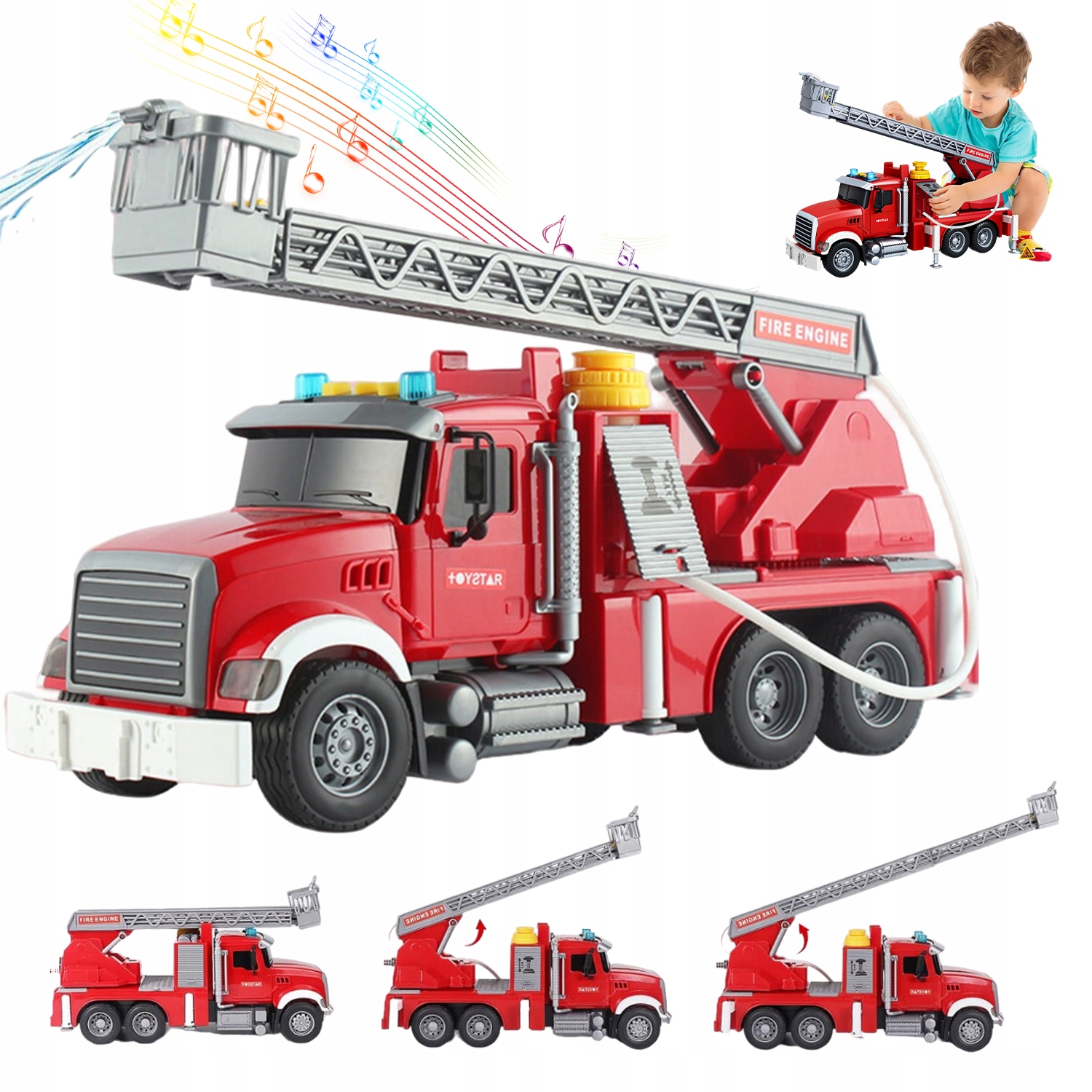 🚒 【Іграшка пожежі з функціями】 : пожежна машина має робочий водяний насос, миготливі вогні, три кнопки звуку та сходи для рятування. Завдяки реалістичним пожежним машинам ваші діти будуть відчувати себе професійними пожежниками.