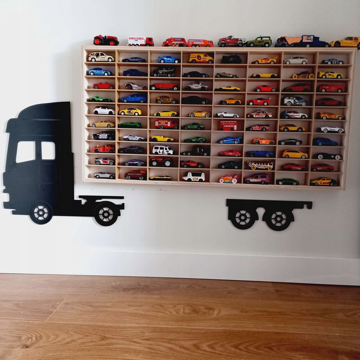 АВТОМОБІЛЬНА ПОЛИЦЯ ОРГАНІЗАТОР HOT WHEELS 80 ВІДДІЛЕНЬ ДЕРЕВО + ВАНТАЖІВКА