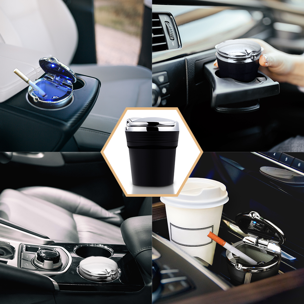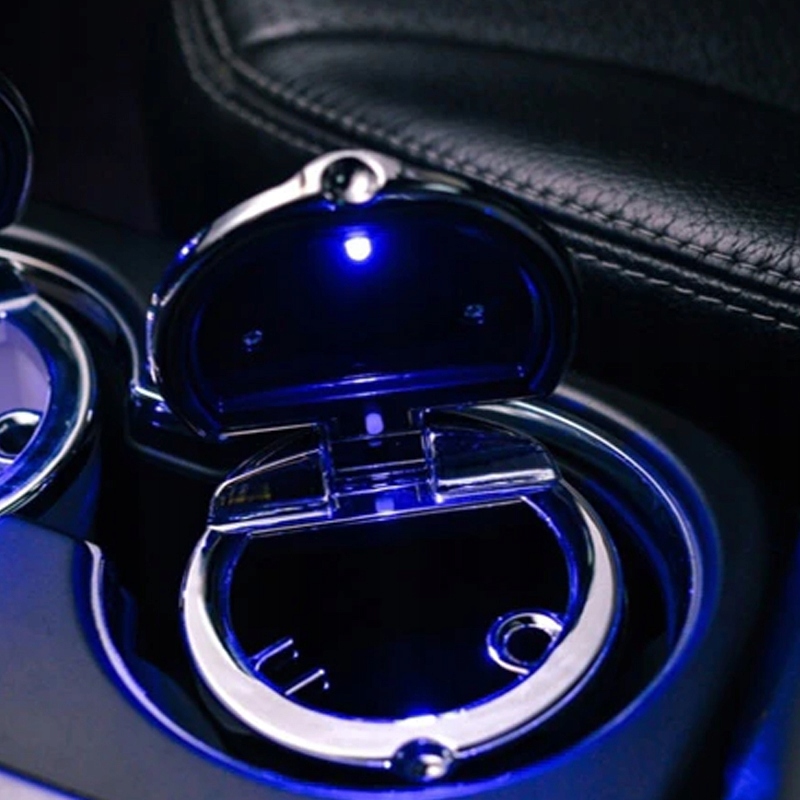 Після відкриття попільничка автоматично підсвічується синім кольором. Привабливий колір надає попільничці чудового дизайну. Підсвічування корисне під час паління сигарет вдень або вночі. Продукт сумісний з усіма підставками для чашок і напоїв. Попільничка — це дуже практичний предмет, який можна використовувати не тільки в автомобілі, але й вдома чи в гаражі.