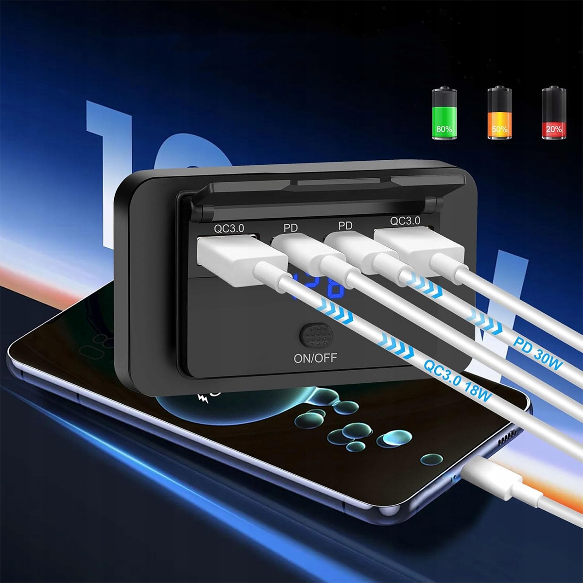 - Максимальна вихідна потужність: підтримує Одночасне заряджання 4 пристроїв