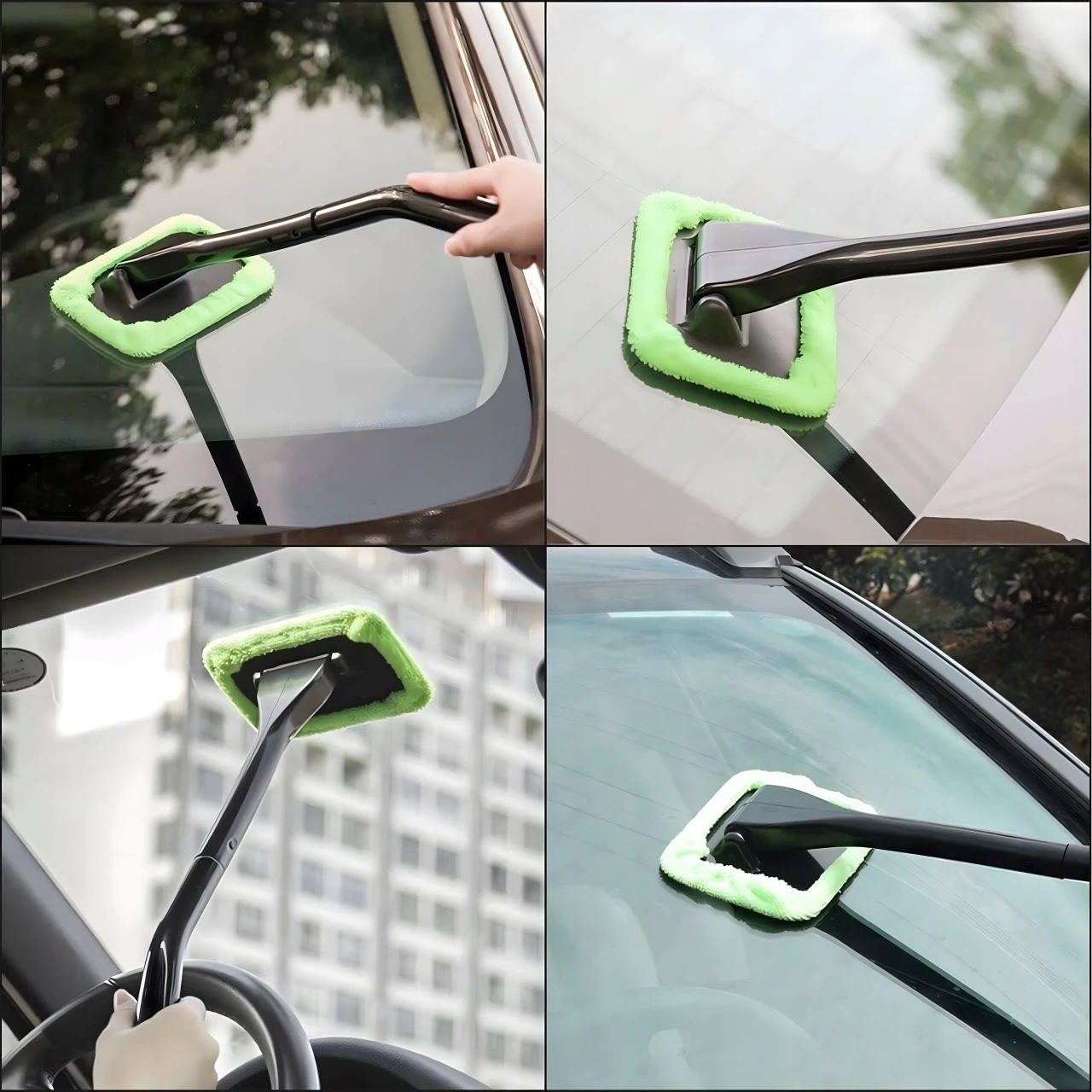 Щітка для миття скла, вікон і дзеркал з мікрофібри - з обертовою головкою і довгою ручкою. Ефективно видаляє бруд, пил і пару без розводів. Чохол можна прати в пральній машині. Ідеально підходить для автомобіля та дому!