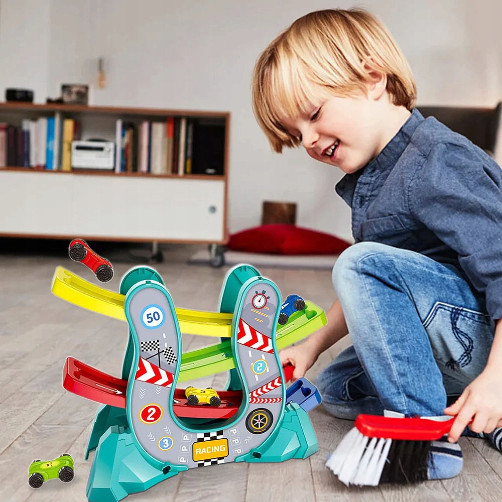 На свої місця! Готовий! старт! Представляємо автомобільний пандус, який відправить вашу дитину в подорож, повну пригод. Ця барвиста триповерхова конструкція заохотить вашого малюка до ігор. У набір входить трек і чотири машинки. Ці елементи зроблять розвагу ще більш захоплюючим, а також розвинуть у вашої дитини інтерес до автомобілів. Іграшка - чудовий спосіб розвитку уяви та творчих здібностей, а також основних принципів фізики. Набір працює без батарейок - всі елементи працюють завдяки вбудованим механізмам. Завдяки цьому вам не доведеться хвилюватися, що іграшка розрядиться, поки ваша дитина нею користується!