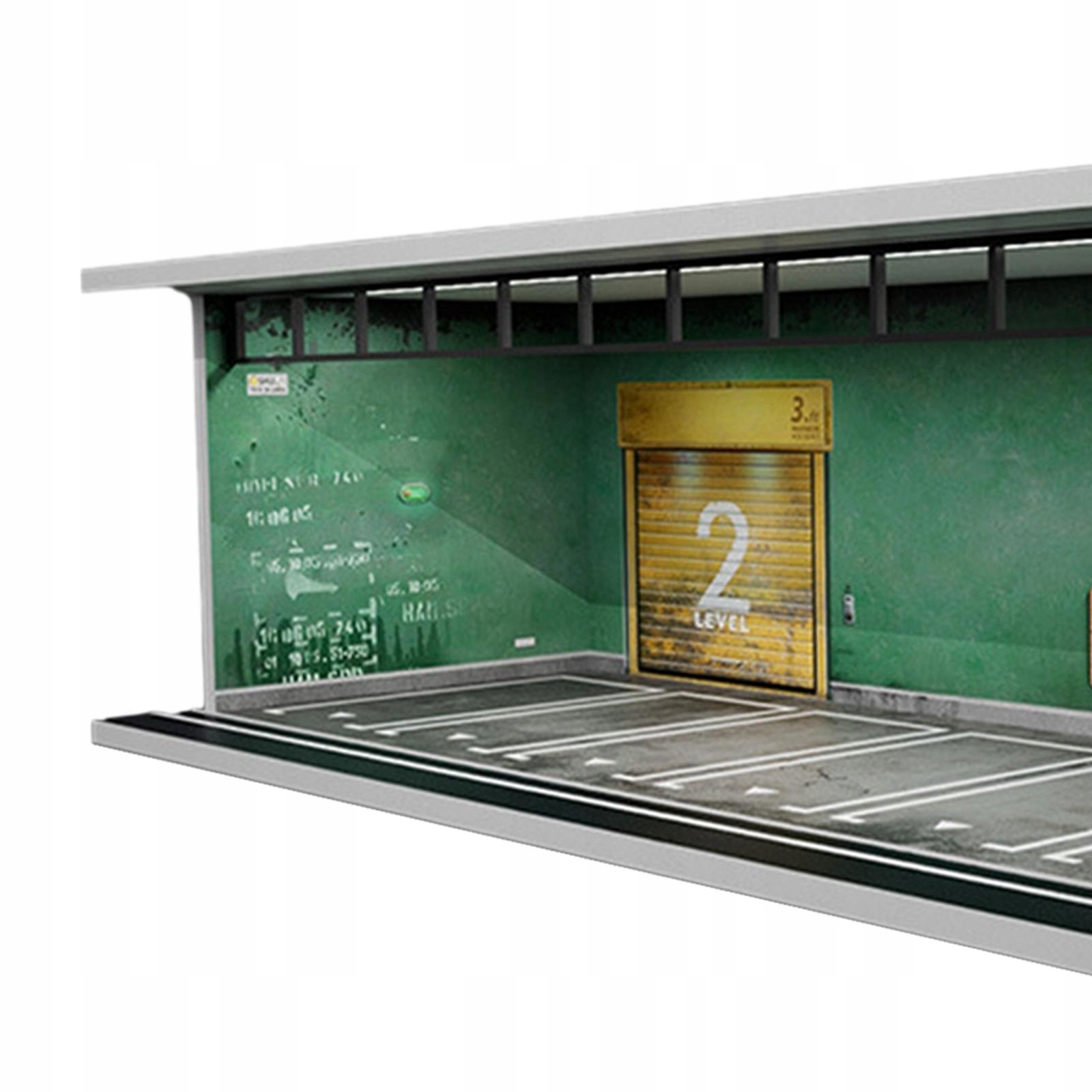 [Гаражний сайт]: 1/64 Модельована сцена паркування зі світлодіодним освітленням, яка може бути адаптована до ляльок, автомобілів, реквізитів для фотографій для паркування для сцени діорами тощо.
