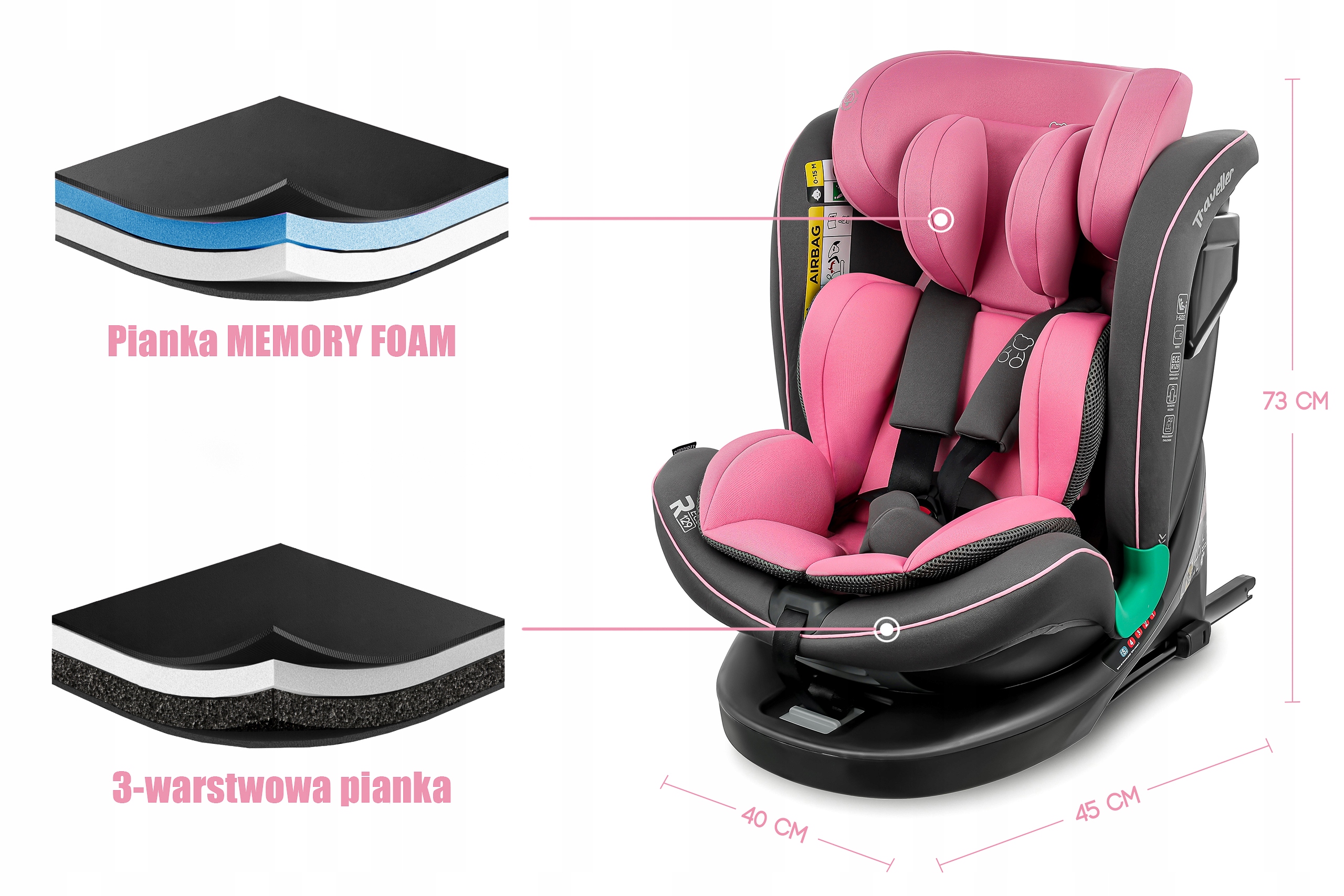 Сертифіковане автокрісло призначене для дітей зростом 40-150 см. Його може використовувати дитина зростом до 150 см, тобто приблизно до 12 років. Сидіння можна встановити обличчям вперед або назад, залежно від ваших потреб та безпеки дитини. Сидіння має кріплення ISOFIX + Top Tether і 4-ступеневу систему регулювання висоти підголівника. Завдяки використанню спеціальної знімної вставки, яка відповідає за правильне положення дітей, які ще не вміють самостійно сидіти, крісло «росте» разом з нашою дитиною від народження до 12 років. Сидіння оснащене сидінням, що обертається 360°.