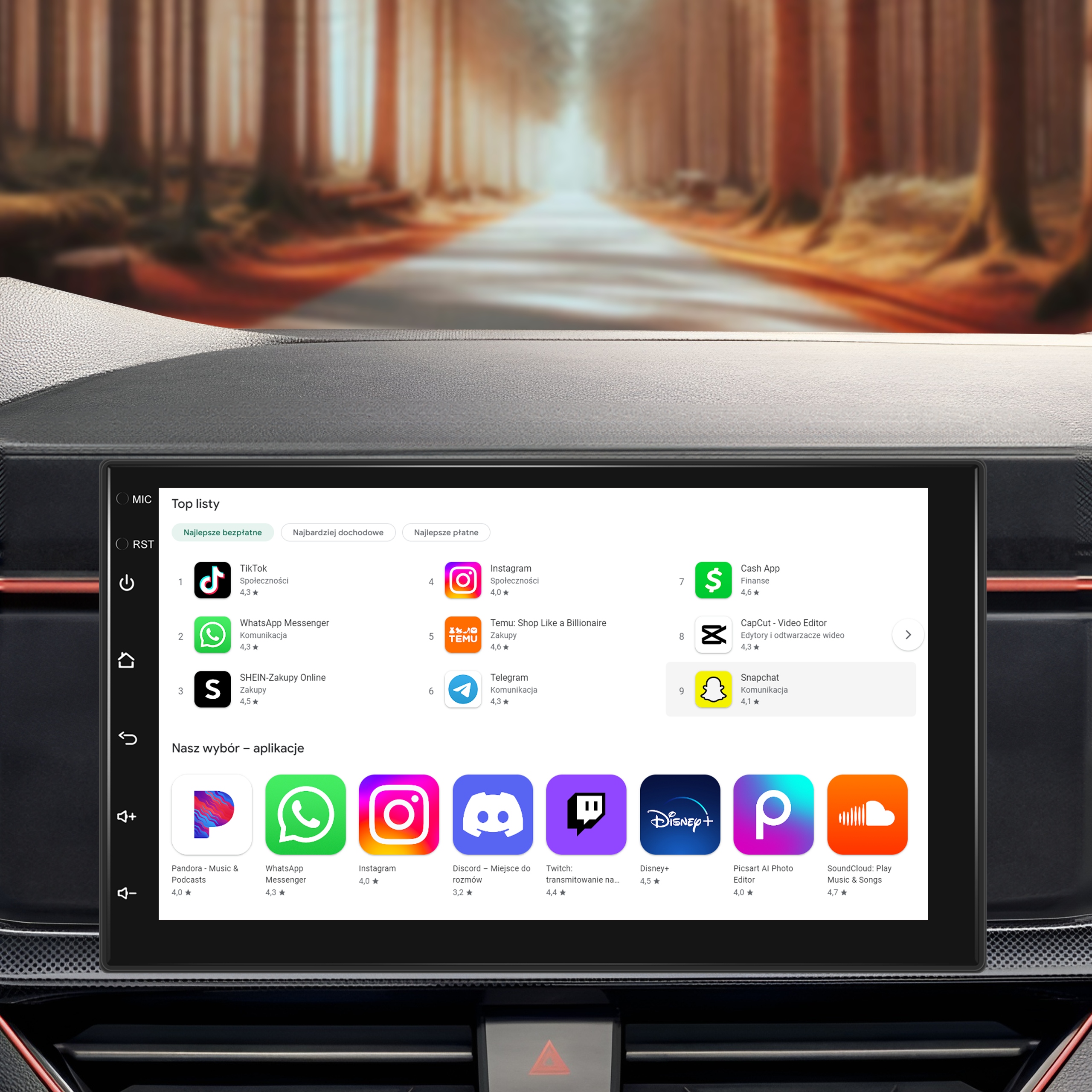 - Підтримка програм, як і на вашому телефоні.Встановіть корисні програми, такі як: Yanosik або Fuelio!