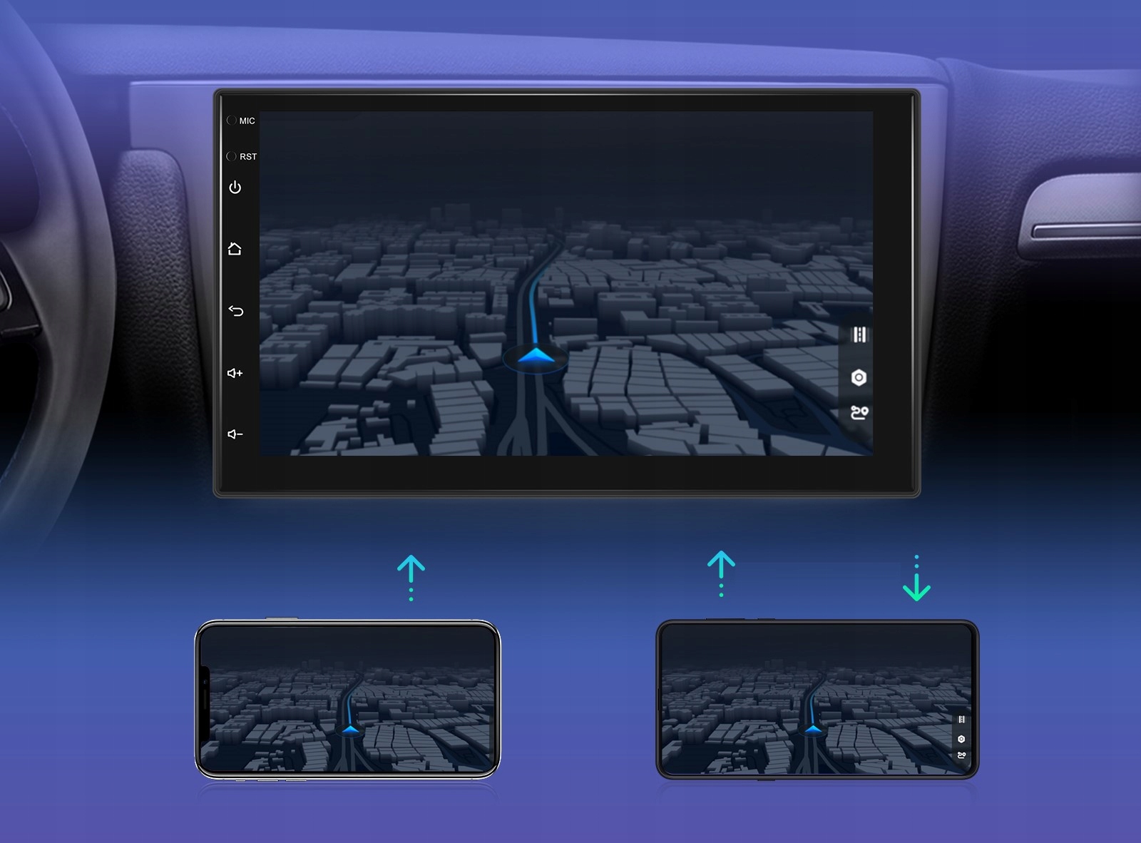 Функція, що дозволяє перенести екран з телефону на радіодисплей. Зв'язок між магнітолою та смартфоном здійснюється через USB-кабель, а повна цілісність дозволяє керувати телефоном з екрану плеєра. Завдяки дзеркальному зв’язку ви можете перенести, наприклад, запущену навігацію, улюблене музичне відео, фільми чи фотографії на автомобільну магнітолу.