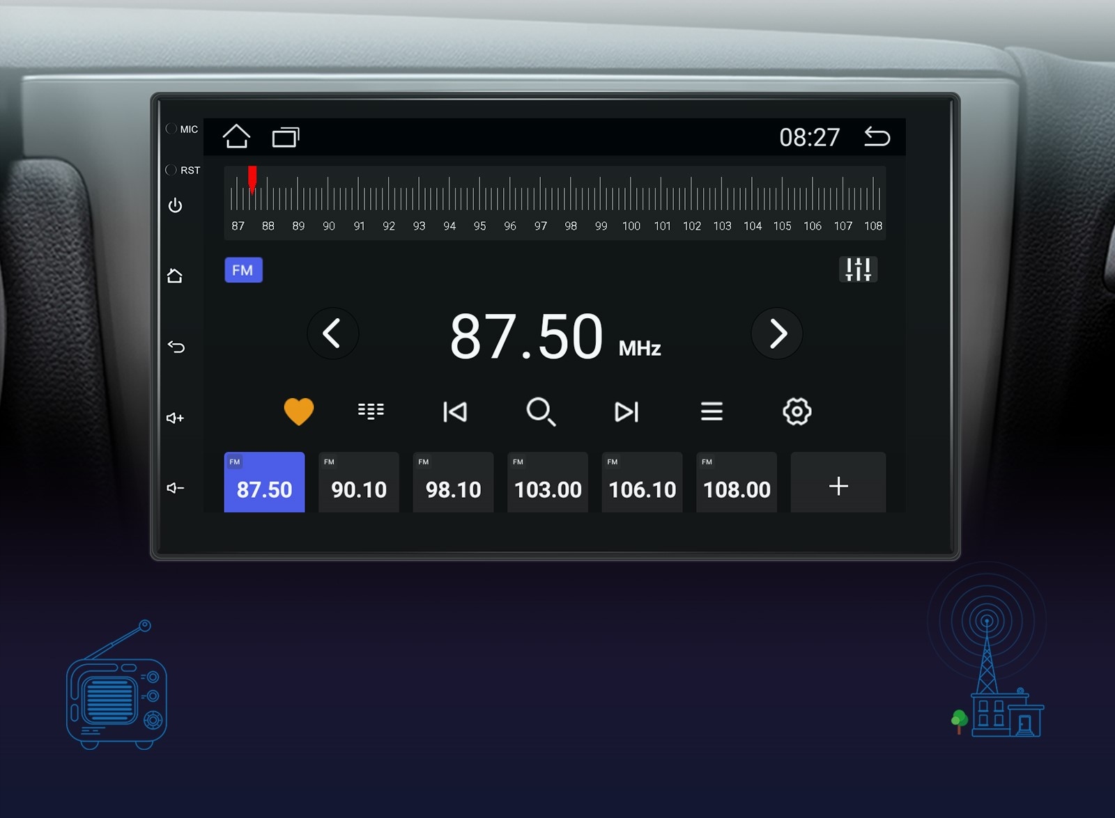 На додаток до мультимедійних аспектів, пристрій виконує свою роль класичного радіо для відтворення AM/FM-станцій. Завдяки стандарту RDS ви можете приймати цифрові повідомлення та інформацію, що транслюється радіостанціями. Тепер на екрані відображатиметься поточний час, назва пісні та альтернативні частоти.