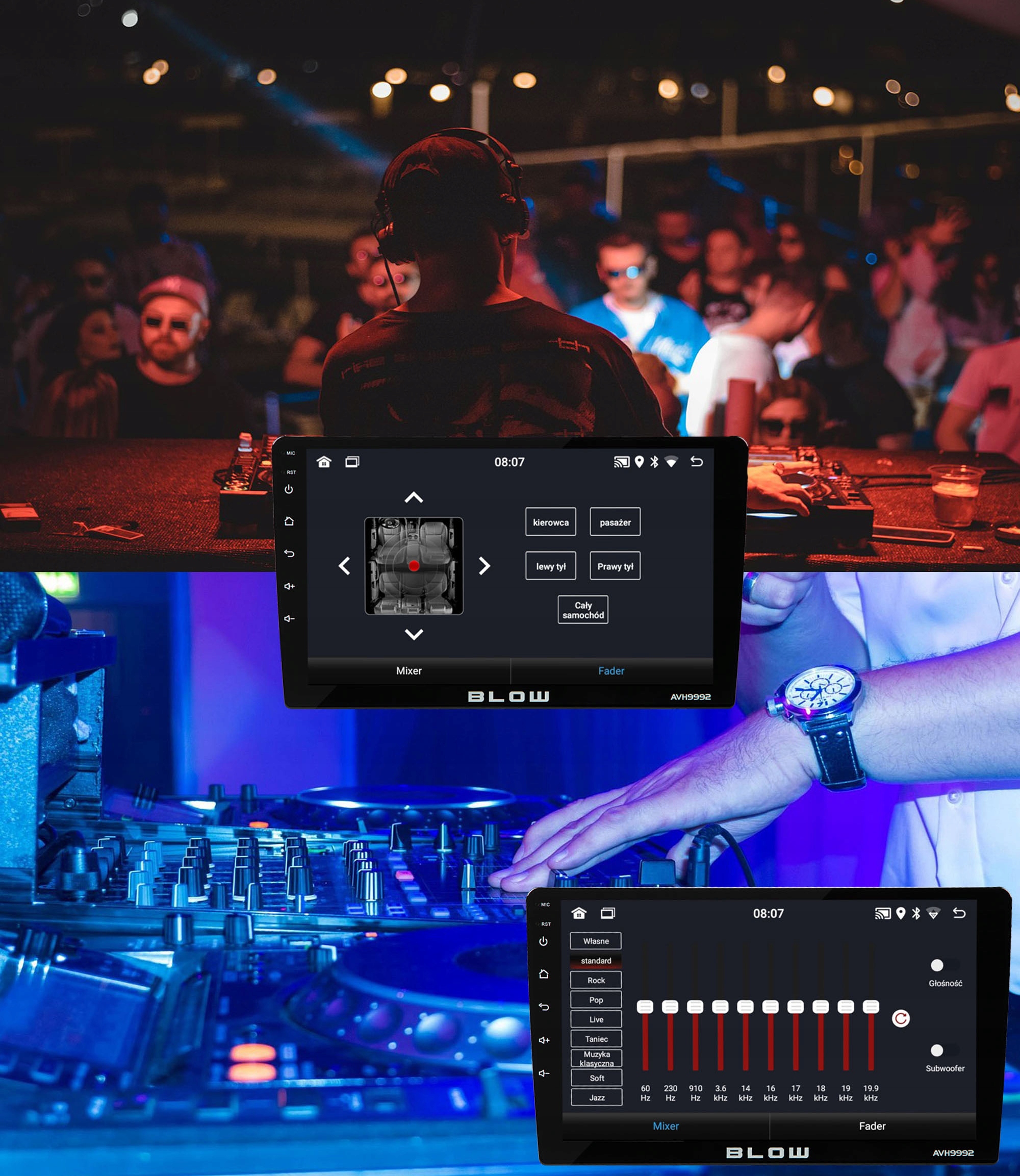 Пристрій має вбудовані Еквалайзер і Фейдер із вбудованими попередньо визначеними режимами та можливістю власні налаштування, завдяки яким ми можемо налаштувати звук, що виходить з колонок, так, як нам подобається.