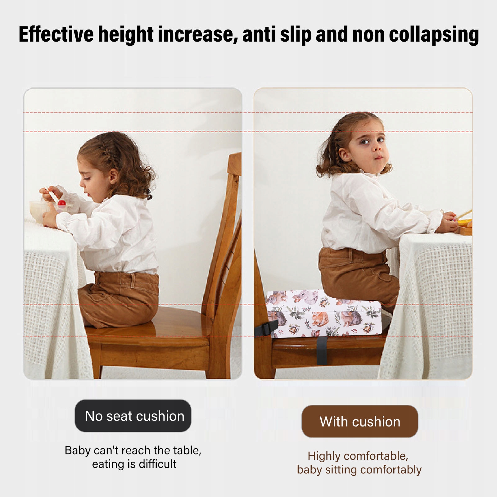 2. Безпечна конструкція не ковзає: подушка містить проект, який не ковзає, що гарантує, що малюк безпечно сидить на місці, зменшуючи ризик ковзання та забезпечення миру під час їжі.