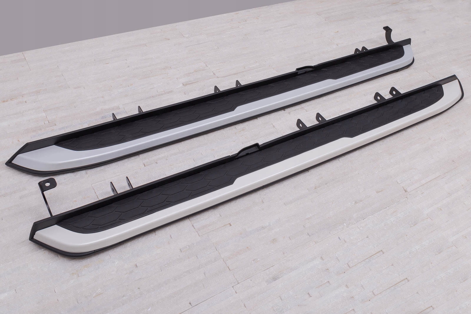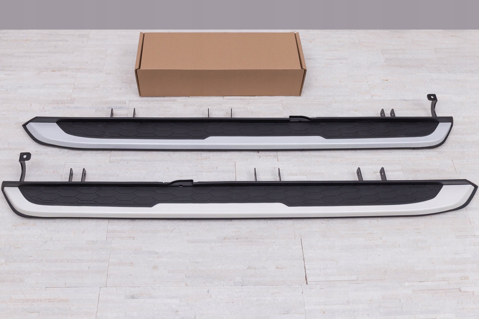 Встановлення ступенів не потребує свердління додаткових отворів, що дозволяє зберегти оригінальні точки кріплення та гарантує неінвазивний монтаж. У комплект входить набір підніжок (права і ліва), елементи збірки та інструкція. Проте ми рекомендуємо професійну збірку в майстерні (з досвіду ми знаємо, що найкраще скористатися послугами малярних або кузовних майстерень, тому що на цих підприємствах найчастіше встановлюють планки, плінтуса та сходинки , тому складання для цих заводів є /b> інтуїтивно зрозумілою дією).