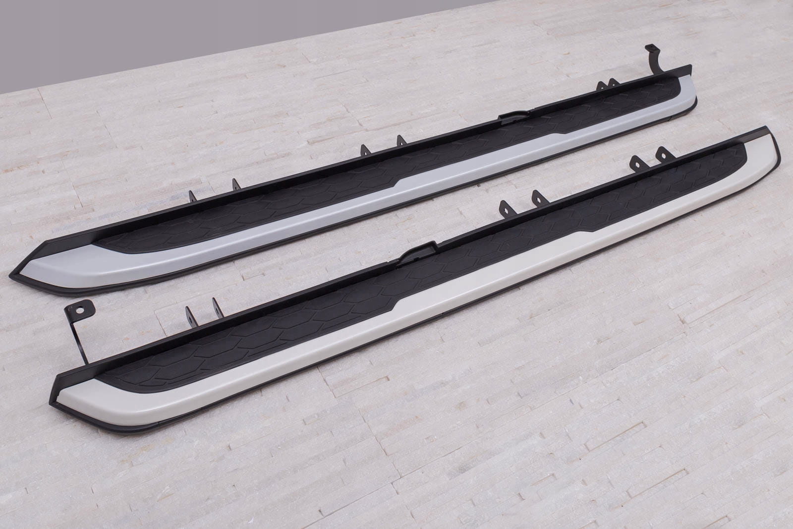 Встановлення ступенів не потребує свердління додаткових отворів, що дозволяє зберегти оригінальні точки кріплення та гарантує неінвазивний монтаж. У набір входить набір підніжок (права і ліва), елементи збірки та інструкція. Проте ми рекомендуємо професійну збірку в майстерні (з досвіду ми знаємо, що найкраще скористатися послугами малярних або кузовних майстерень, тому що на цих підприємствах найчастіше встановлюють планки, плінтуса та сходинки , тому складання для цих заводів є /b> інтуїтивно зрозумілою дією).