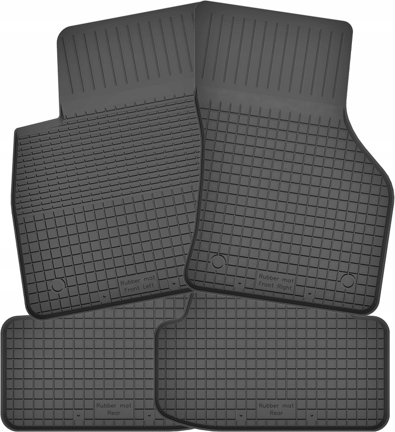 Пропоновані гумові килимки є універсальними килимками на основі замінників, адаптованих до передньої та задньої моделі автомобіля, вказаної в розділі «Підходить до». Килимки виготовлені з якісної гумової суміші чорного (матового) кольору, яка не виділяє неприємного запаху (килимки мають нейтральний запах гуми). Килимки мають вищий захисний край приблизно 2 см, який призначений для захисту оригінальної оббивки автомобіля від бруду або затоплення. Вся поверхня килимків закріплена додатковими виступами з нижньої сторони, які захищають килимки від переміщення в автомобілі.