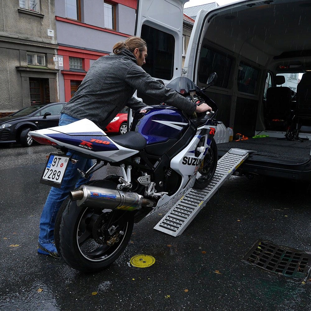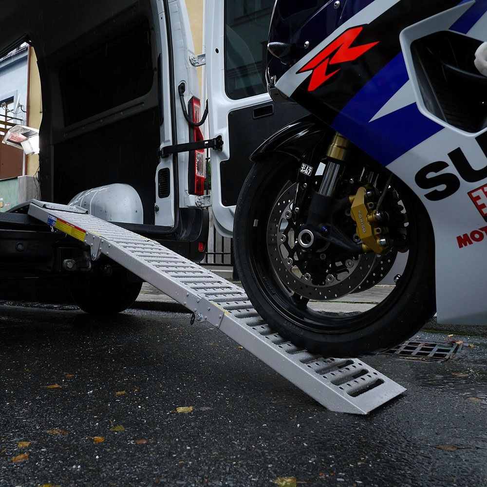 Набір пандусів GEKO включає два складаних міцних пандуси для автомобілів або мотоциклів із шириною шин до 225 мм.