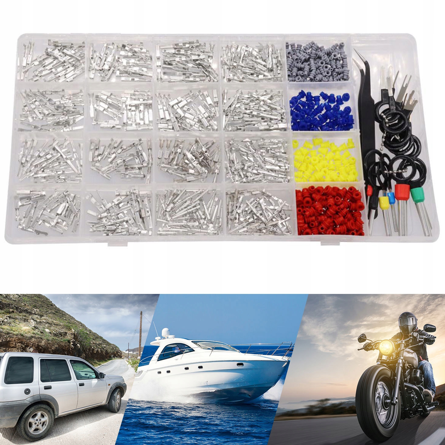 【Широке застосування】: Призначено для роз’ємів 12 В, мотоциклів, вантажівок, човнів, водних мотоциклів, скутерів, автомобілів і човнів. Цей набір затискачів використовується в багатьох галузях промисловості.