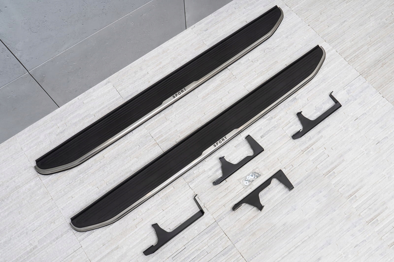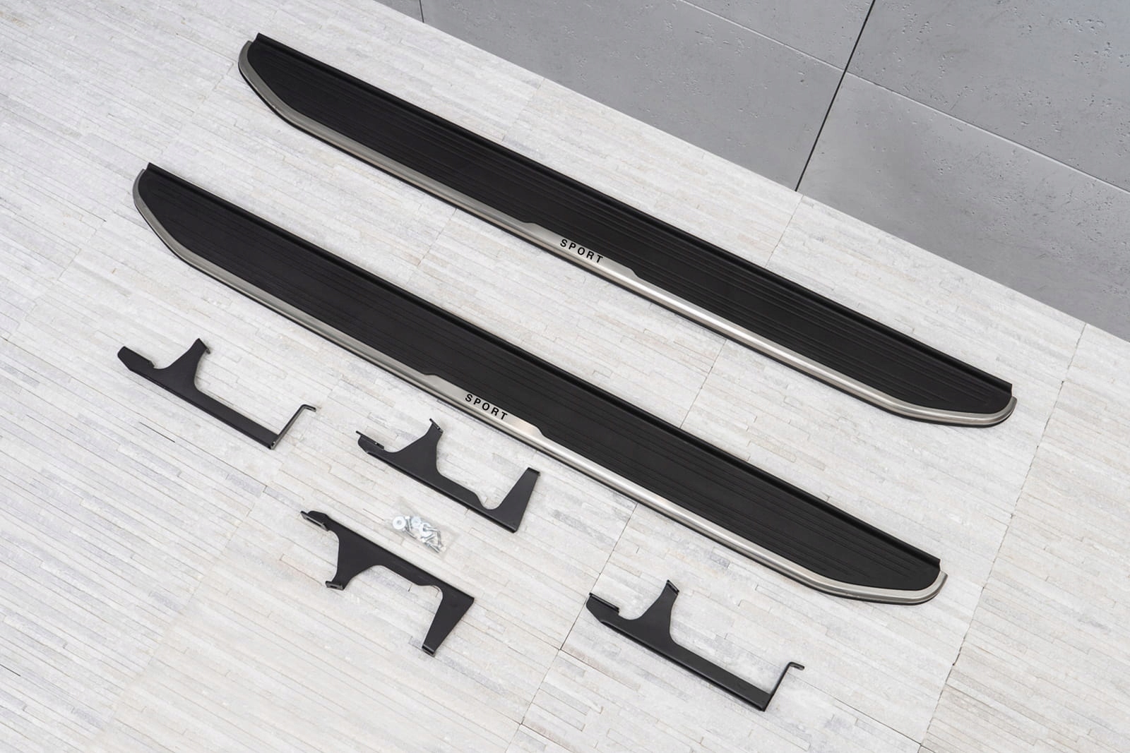 Бічні підніжки розроблено для підвищення комфорту під час входу та виходу з автомобіля, а також для більш зручного робочого положення під час розміщення вантажів на даху автомобіля. Пороги не тільки забезпечують комфорт, але і підвищують безпеку, що особливо важливо для дітей і людей похилого віку.