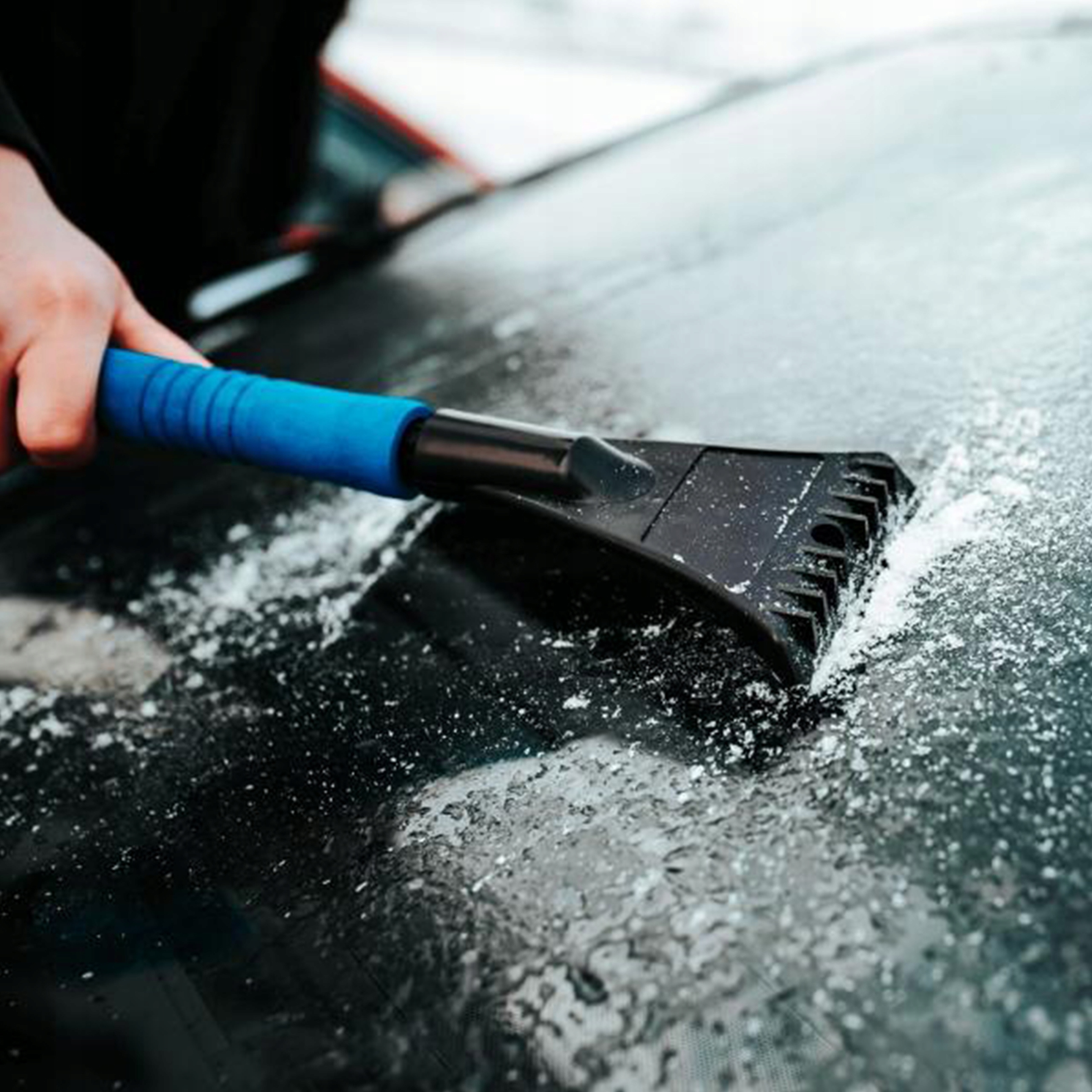 - Можна ефективно видалити сніг, мороз та лід з вікон автомобіля завдяки комбінації пензля та скребка.