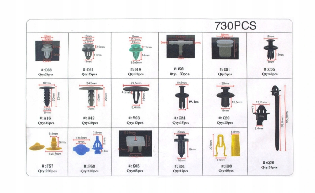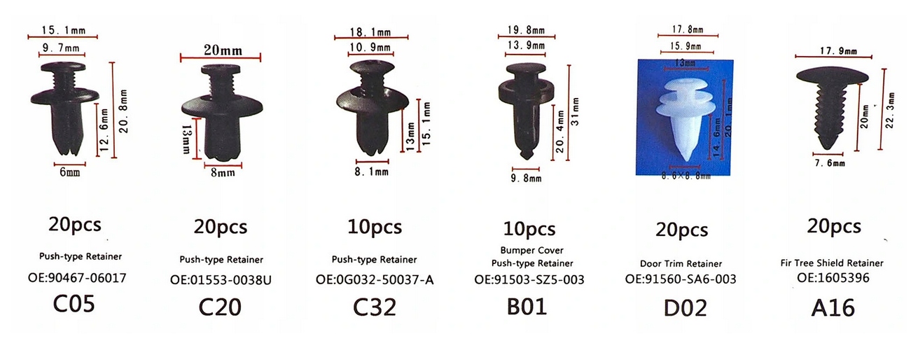 Набір складається з універсальних автомобільних кліпс, які можна знайти в таких марках автомобілів, як: