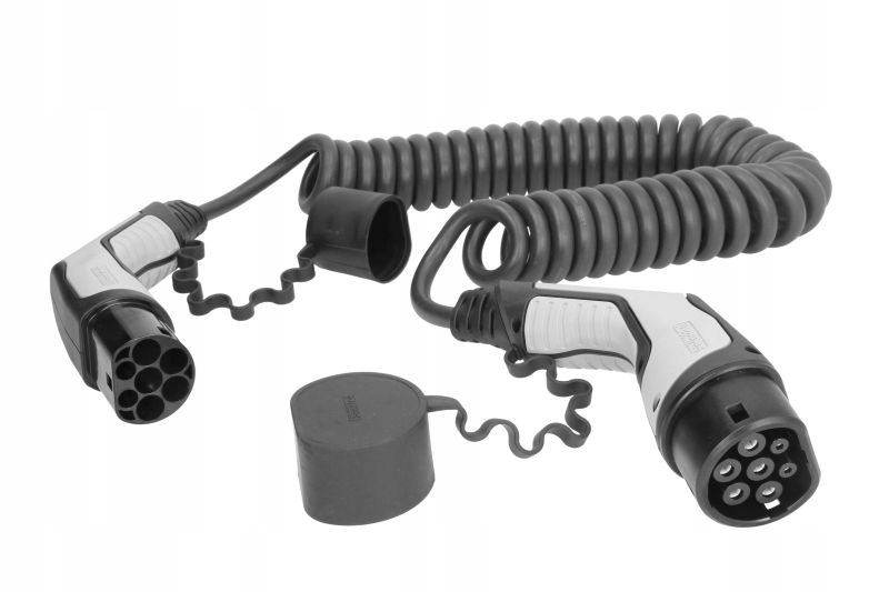 3-фазний спіральний кабель серії C-Line типу 2 для заряджання автомобілів EV, PHEV, 4 м, 16,63 кВт, 20 A, 2,5 мм2, чорний
