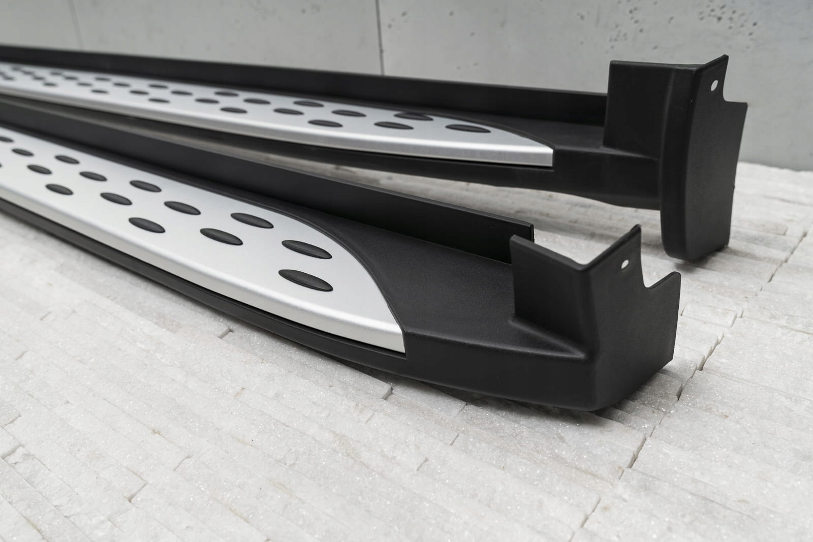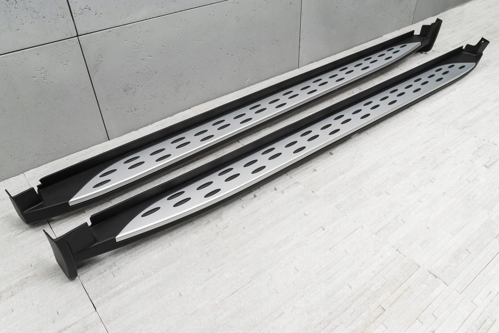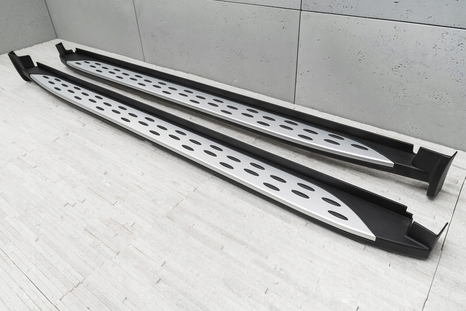 Автомобільні підніжки для MERCEDES GLA – ідеальне рішення для людей, які цінують комфорт і комфорт. Виготовлені з високоякісного алюмінію та автомобільного пластику ABS, вони забезпечують не тільки елегантний зовнішній вигляд, але й стійкість до погодних умов. Завдяки цьому бічні підніжки виходять міцними і довговічними, і при цьому надовго зберігають свій зовнішній вигляд. Бічні підніжки підвищують комфорт при посадці та виході, що особливо корисно для дітей, людей похилого віку та людей з обмеженими можливостями пересування, а також забезпечують більш зручне робоче положення при розміщенні вантажів на даху автомобіля.