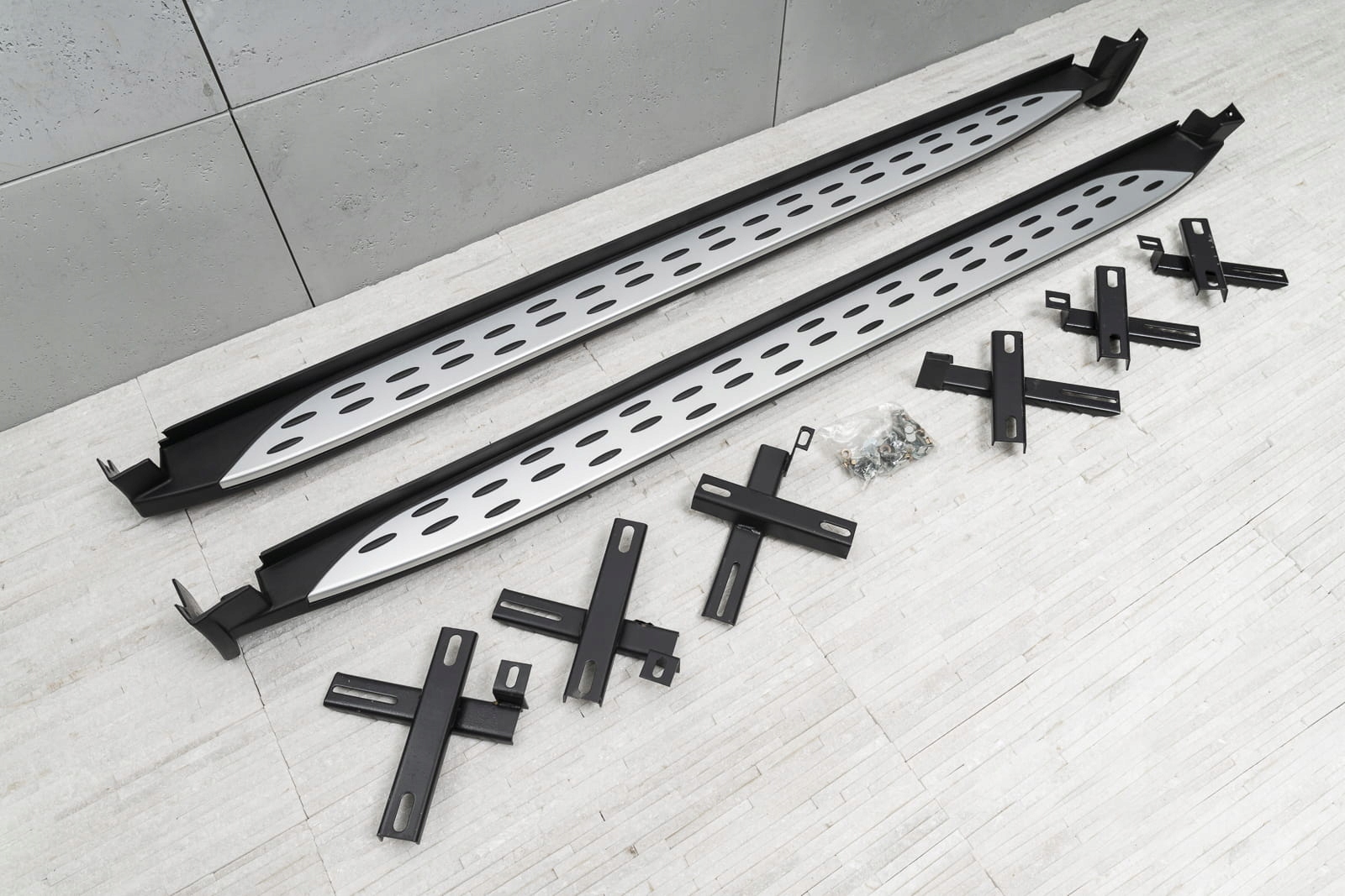 Встановлення сходинок не потребує свердління додаткових отворів, що дозволяє зберегти оригінальні точки кріплення та гарантує неінвазивний монтаж. У набір входить набір підніжок (права і ліва), елементи збірки та інструкція. Проте ми рекомендуємо професійну збірку в майстерні (з досвіду ми знаємо, що найкраще скористатися послугами малярних або кузовних майстерень, тому що на цих заводах найчастіше встановлюють планки, плінтуса та сходинки , тому складання для цих заводів є /b> інтуїтивно зрозумілою операцією).