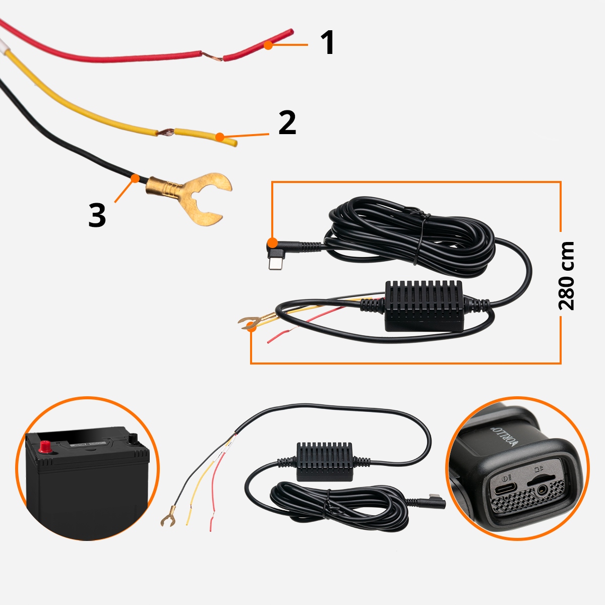 Адаптер постійного живлення дозволяє повністю використовувати режим паркування в камері. Камера активується під час удару, а потім автоматично вимикається.