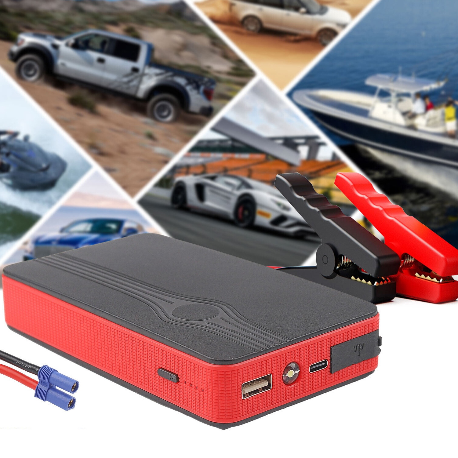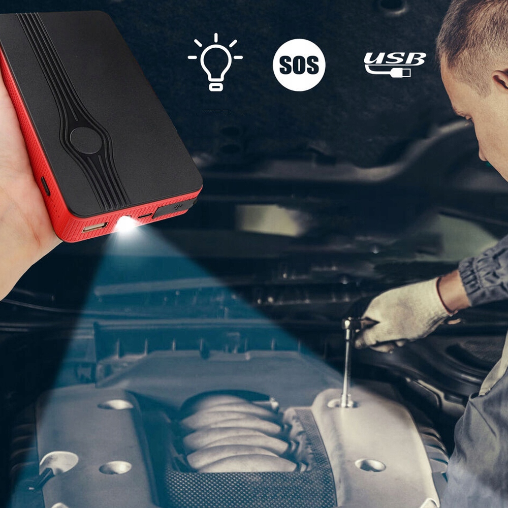 💖💖💖 [Забезпечує живлення майже все] Він може швидко запустити розряджений автомобільний акумулятор або служити акумулятором для заряджання смартфонів, консолей PSP, MP3/MP4/MP5-плеєрів, планшетів, КПК, цифрових камер, ігор та інших пристроїв. Він має вбудований USB-вихід 5 В/2 A і є ефективним зарядним пристроєм для акумуляторів і акумулятором.