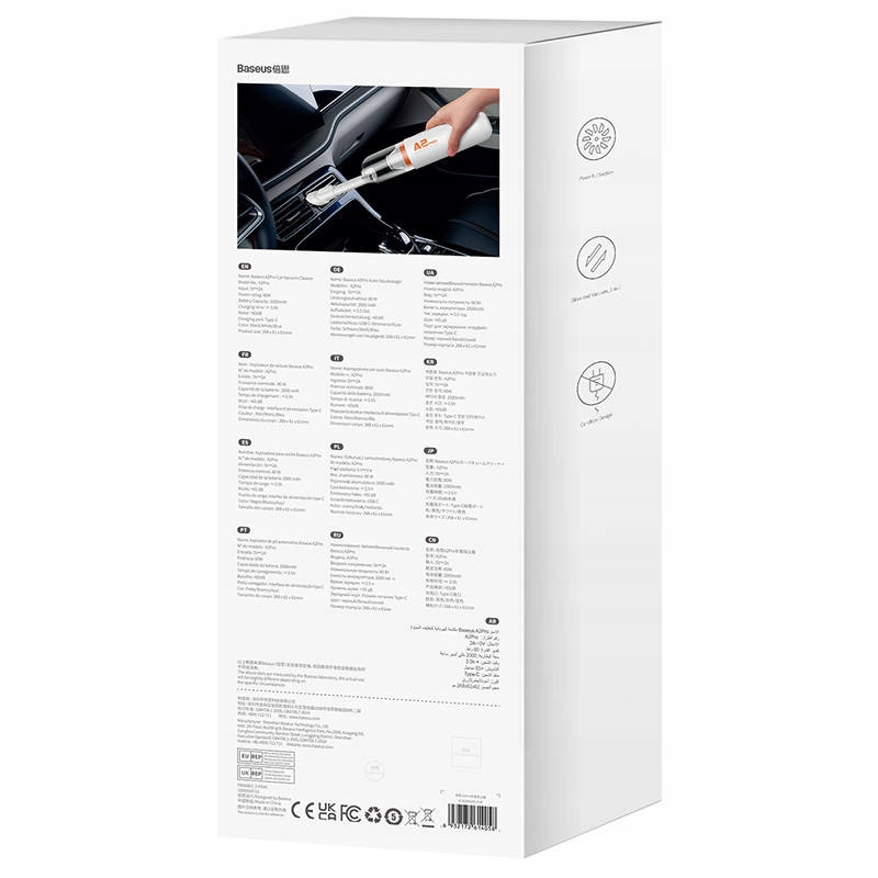 Акумуляторний автомобільний пилосос Baseus оснащений двигуном, який працює з частотою 50 000 об/хв і не створює багато шуму (65 дБ). Крім того, сила всмоктування 6000 Па дозволяє ретельно видаляти як більші, так і менші забруднення.