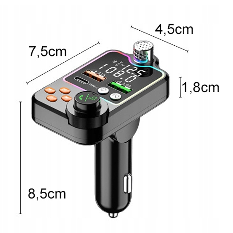 Автомобільний BT 5.0 Transmitter QC3.0 Charger 3xUSB FM RGB