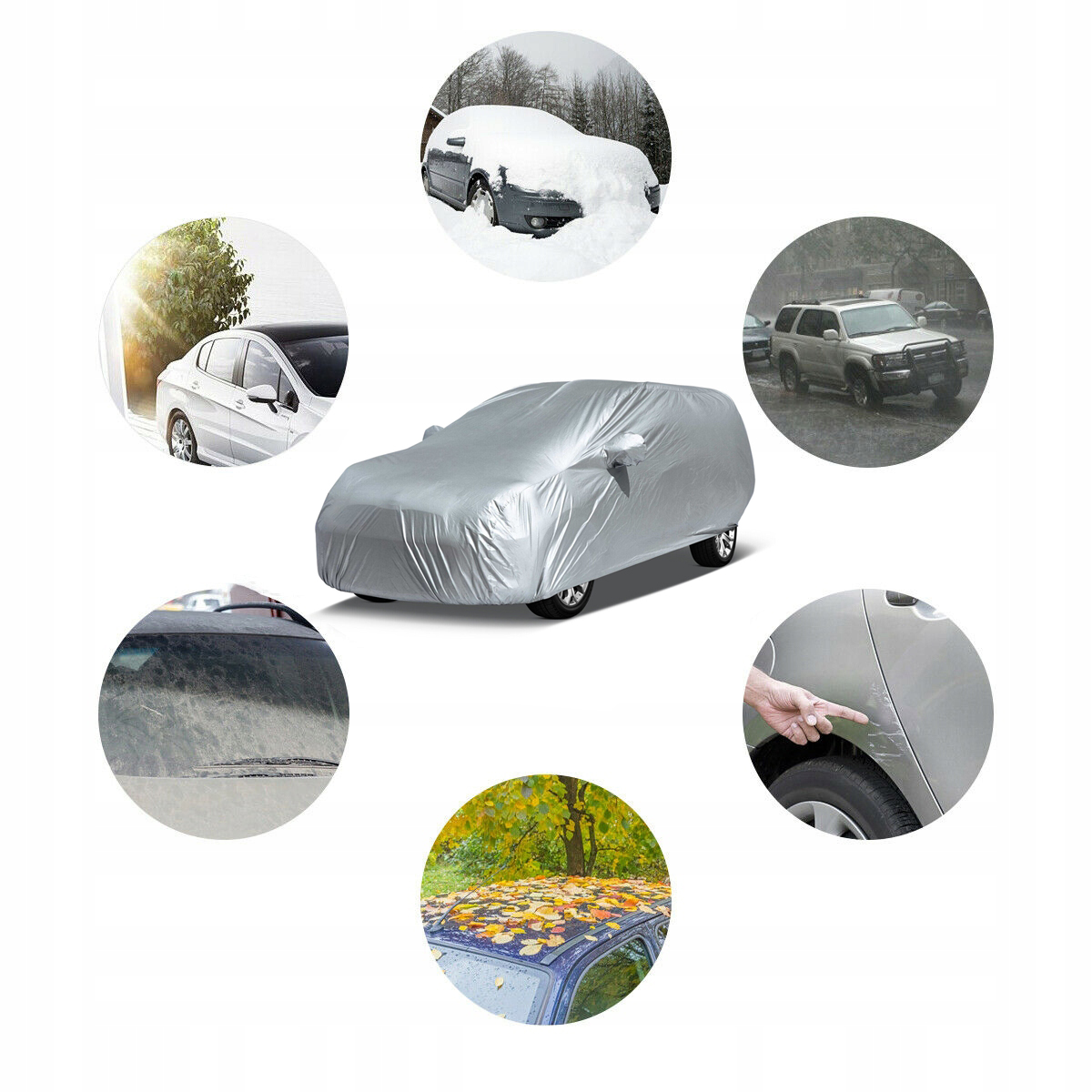 ✨【Багатофункціональний】Автомобільний чохол водонепроникний, пилонепроникний, стійкий до сонця, УФ-променів, снігу, високих температур, бруду, старіння тощо. Ефективно захищає автомобіль від дощу, сонця, шкідливого ультрафіолетового випромінювання, пилу, снігу, граду, морозу та пташиного посліду. Ідеально підходить для використання в приміщенні та на вулиці.