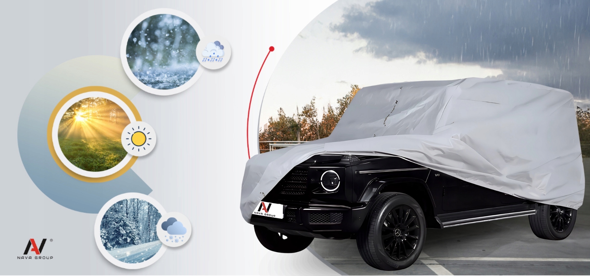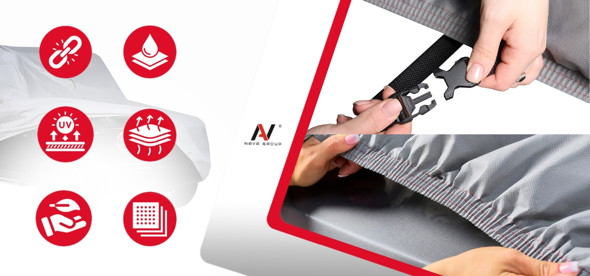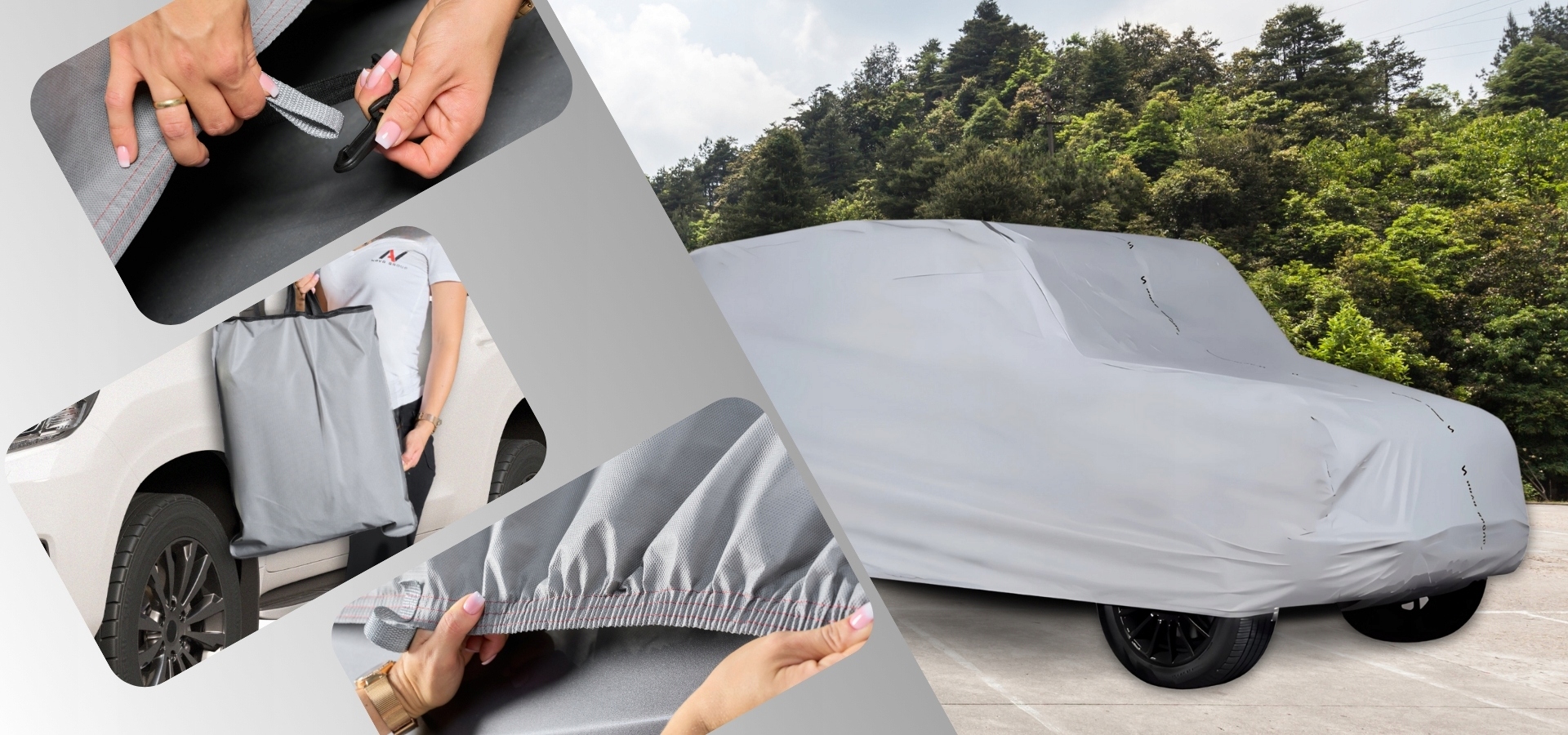 - УФ-захист:матеріал покриття захищає автомобіль від шкідливого ультрафіолетового випромінювання, яке може спричинити вицвітання фарби та руйнування гумових елементів