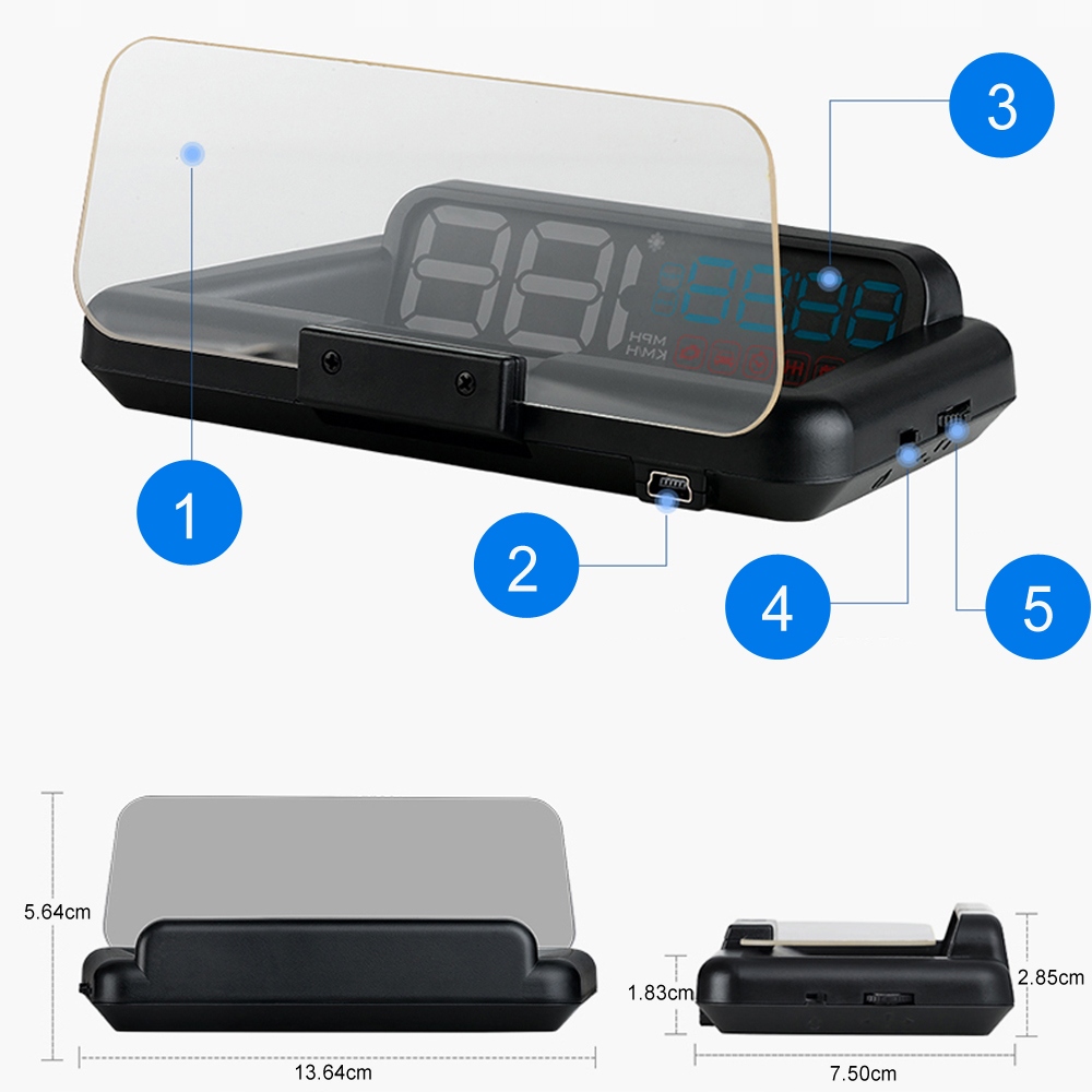 ✔️ Дисплей підходить для автомобілів, обладнаних роз’ємом OBDII.Однак дисплей зчитує лише інформацію, яку йому передає комп’ютер автомобіля. Новітній HUD-дисплей у нашій пропозиції, який не потребує наклеювання спеціальної плівки на скло - зображення проектується на прозорий екран, який можна нахиляти в пристрої!